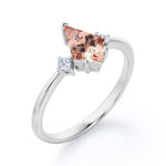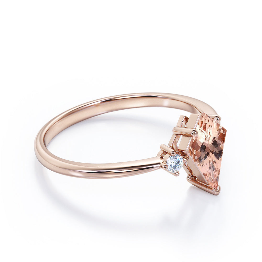 Minimalist Three Stone 0.55 carat Kite Morganite and Moissanite Engagement Ring in Rose Gold