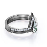You can be fashionable everyday by just adding a little sparkle in your day with the Modern 0.75 carat Kite Shaped Moss Agate and Moissanite Bridal Ring Set in White Gold. This Wedding set contains a 0.5 carat Moss agate engagement ring and 0.25 carat Moissanite V-Shaped wedding band. Solitaire promise ring is the all time favorite engagement ring design. It is simple yet elegant. The classic well polished band compliments its single stone. Make the natural green Moss agate stand out on her finger. Chevron ring features a paved Moissanite along its triangle band. Each Moissanite is delicately lined next to each other, creating an accent edge for the promise ring once you wear them together. For people who love to be less accessorized, you can wear one ring at a time and it will give you a minimal look which matches with all your clothes but if you would like to add a little shiny sparkle to your finger, you can definitely wear both rings and it will give you a unique look which can be used in your everyday life or a special events. 18k gold over silver, 10k gold, 14k gold and 18k gold are up for you to choose with 4 options of colors: white gold, rose gold, yellow gold and black gold.