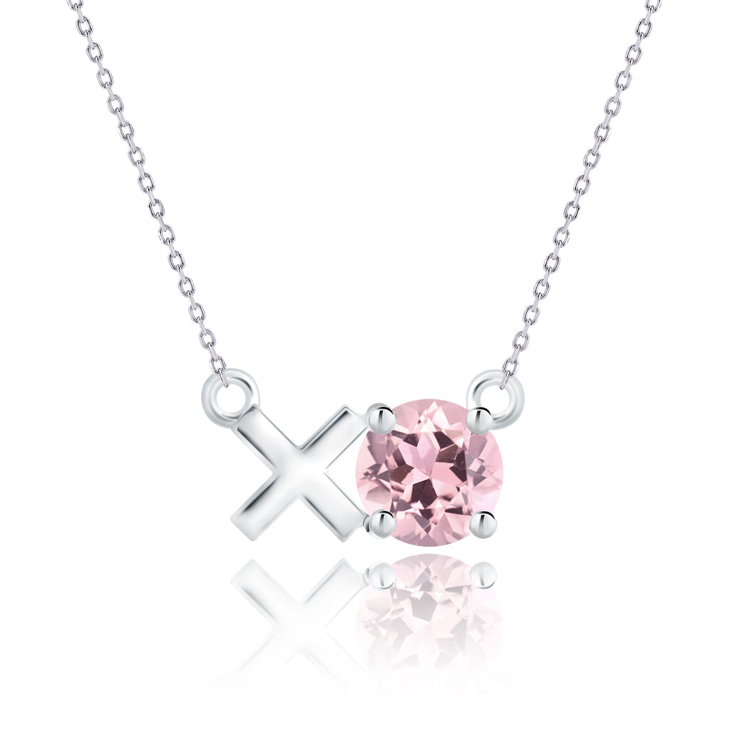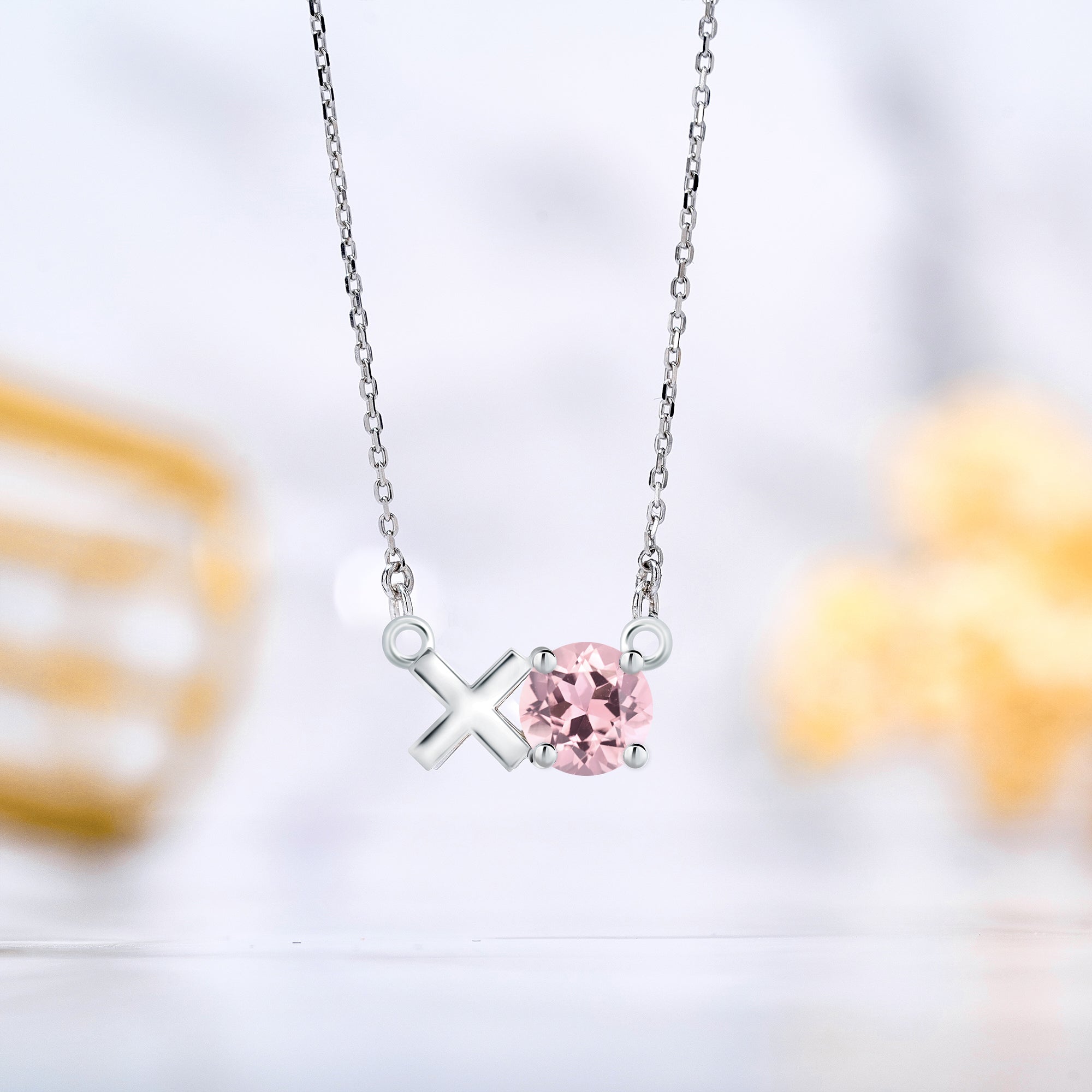 Modern 1.25 TCW Round Cut - Pink Tourmaline - October Birthstone Floating XO Pendant Necklace in 18K White Gold over Silver
