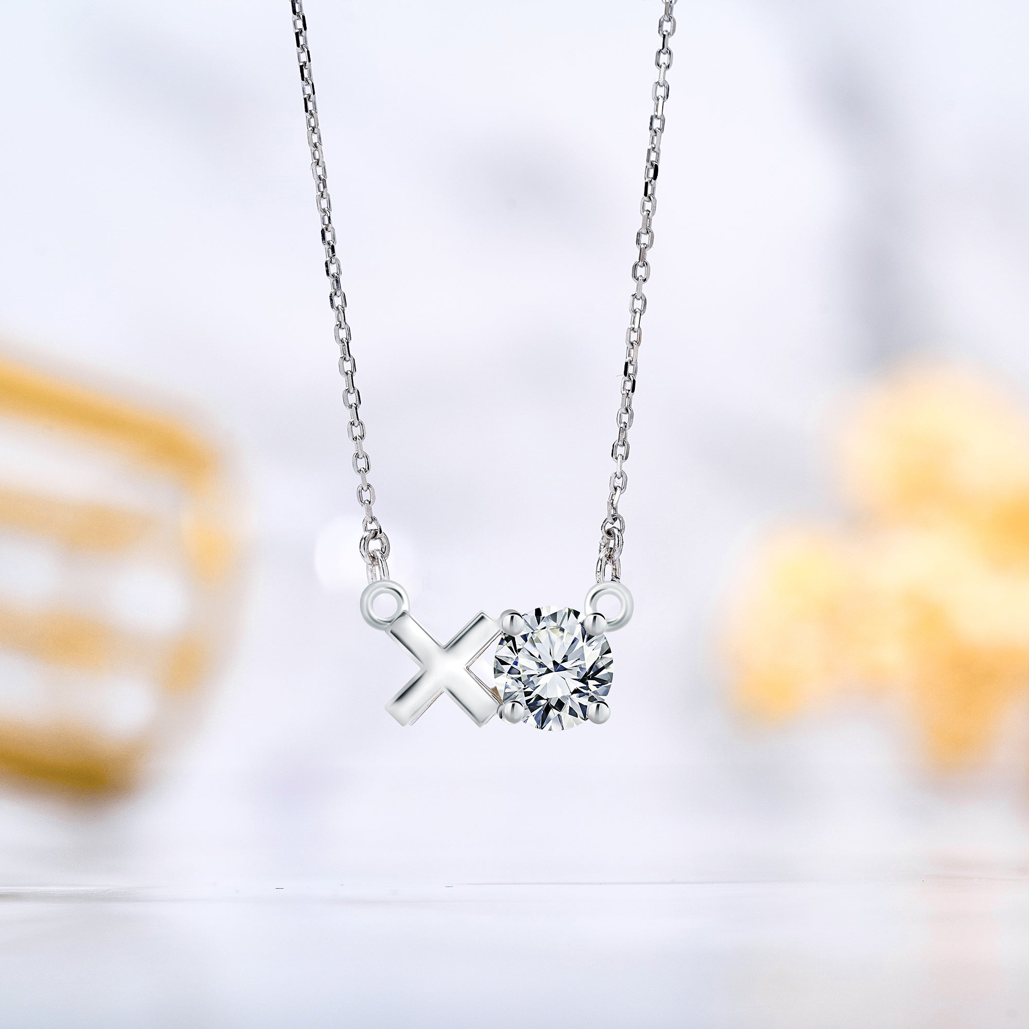 Modern 1 TCW Round Cut - Moissanite - April Floating XO Pendant Necklace in 18K White Gold over Silver