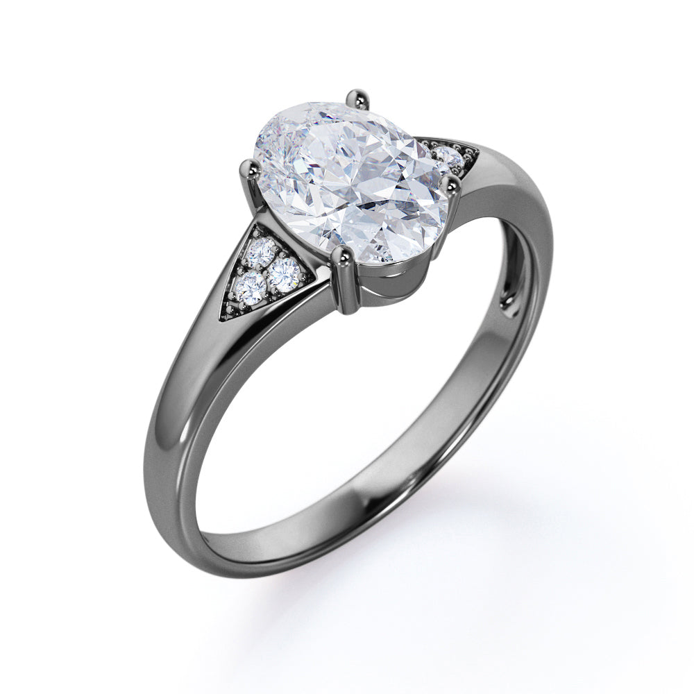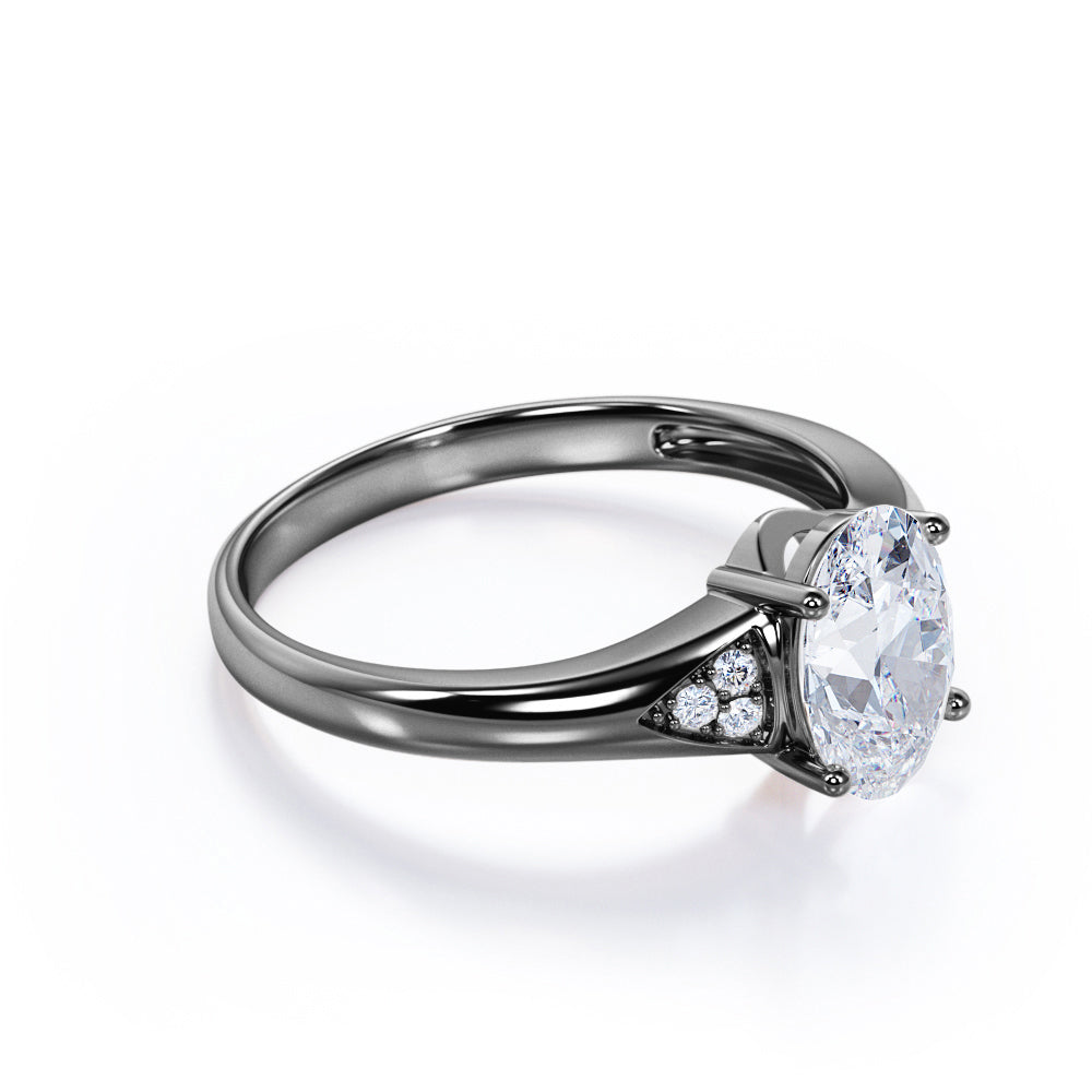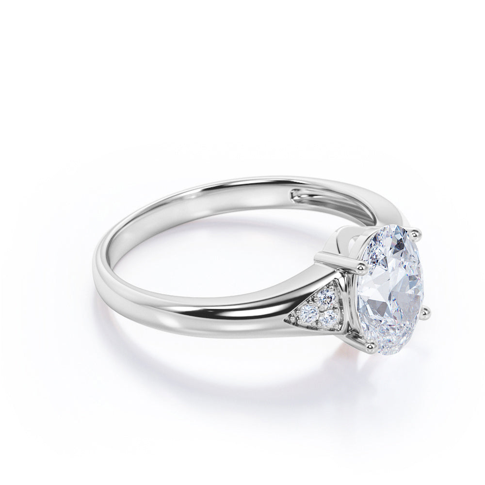Tapered Shank 7 Stone 1.35 Carat Oval Cut Moissanite and Diamond Prong Basket Engagement Ring in White Gold