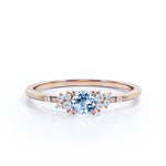 Make her feel even more special with this Modern 4 Prong 1.25 Carat Round Cut Genuine Vivid Blue Aquamarine and Diamond Cluster Engagement Ring. This lovely ring features 1 carat round cut real Aquamarine and .25 carat natural side Diamonds. This beautiful engagement ring can be customized to either 10k, 14K or 18K and either Black Gold, Rose Gold, White Gold or Yellow Gold. Also, as your satisfaction is our top priority, we will do our best to have your handmade jewelry be carefully and beautifully crafted by our expert jewelers. The order also comes with a 30-day full refund policy. This blue beryl ring will be a perfect gift for any occasion namely anniversary, birthday, proposal, Valentine's, Christmas and more. It is crowned as a gem of the sea because of its sparkling ocean-like color. It has a very remarkably high clarity and transparency. It is beautiful and accessible since it is available at a reasonably price. With its dazzling sparkle, this ring is sure to make its wearer stand out from the rest. Being rated an 8 on the Mohs hardness scale, this piece of fine jewelry is suitable for daily wear. Every single details of it is gently handcraft to ensure that the ring will be satisfactory. This ring will enhance happiness and attract positive vibes. Those who are looking for a flawless piece of fine jewelry will love this ring. Don't hesitate to own this ring and make her feel special on your special time.