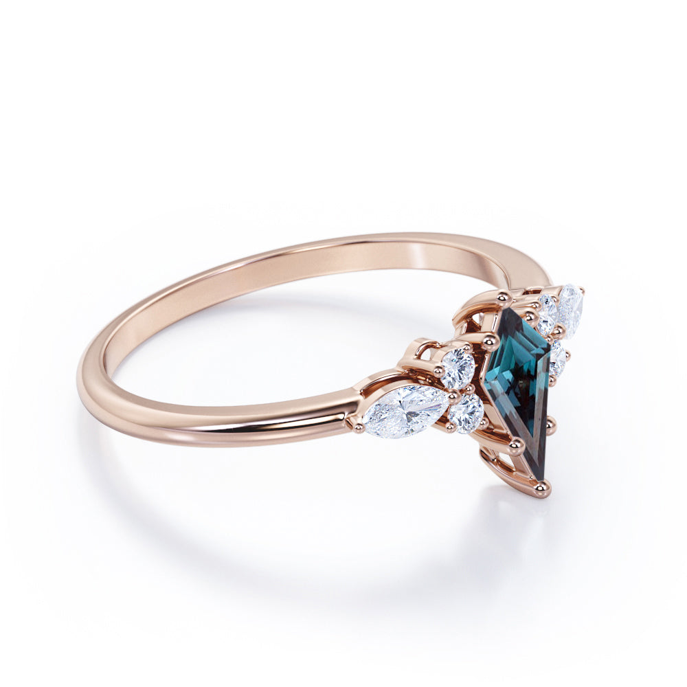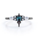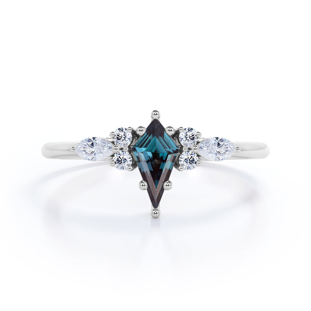 Modern Six Prong Set 1 Carat Kite Shaped Lab Created Alexandrite And Diamond Seven Stone Engagement Ring For Women In White Gold