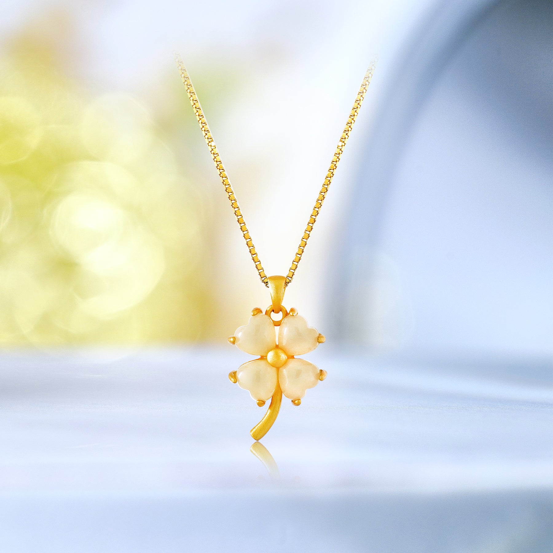 Elevate your gifting game with our exquisite Natural Jade Heart Four Leaf Clover Pendant Necklace in Silver. This clover pendant necklace goes beyond ordinary jewelry, conveying heartfelt emotions and timeless elegance in one enchanting design. Crafted with the utmost precision, the natural jade pendant takes center stage, forming a delicate heart-shaped four-leaf clover. Each leaf is meticulously carved from genuine jade, symbolizing luck, love, hope, and faith. This jade clover pendant carries a profound meaning, making it a perfect gift for your treasured ones on any occasion. Modern and stylish, this real jade pendant necklace seamlessly blends tradition with contemporary aesthetics. The heartwarming design is gracefully suspended from a silver chain, allowing the pendant to rest near the heart â a gesture that speaks volumes of your affection proving to be the most meaningful jewelry for her.