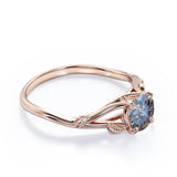 0.33 Ct Round Cut Salt and Pepper Diamond Leaf Engagement Ring