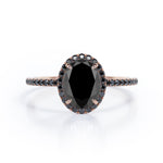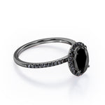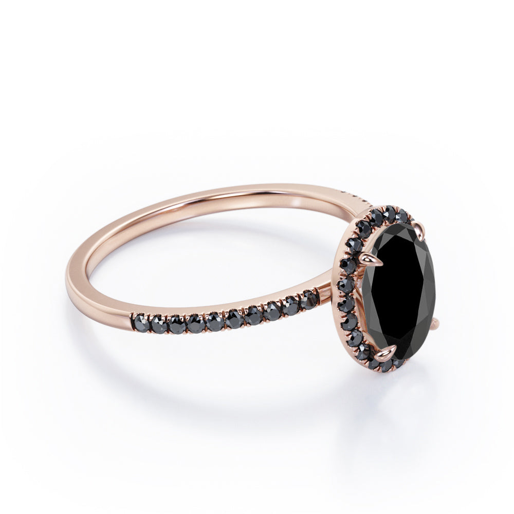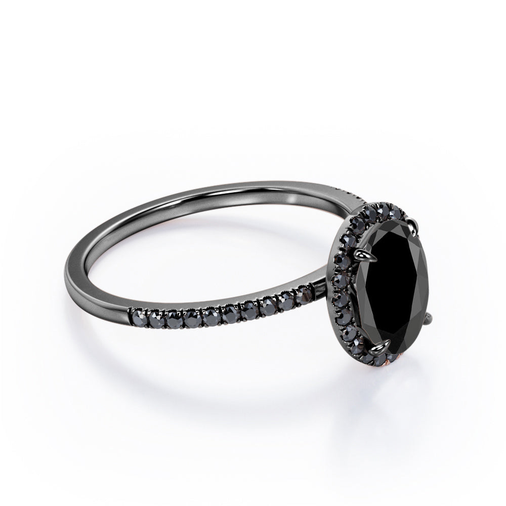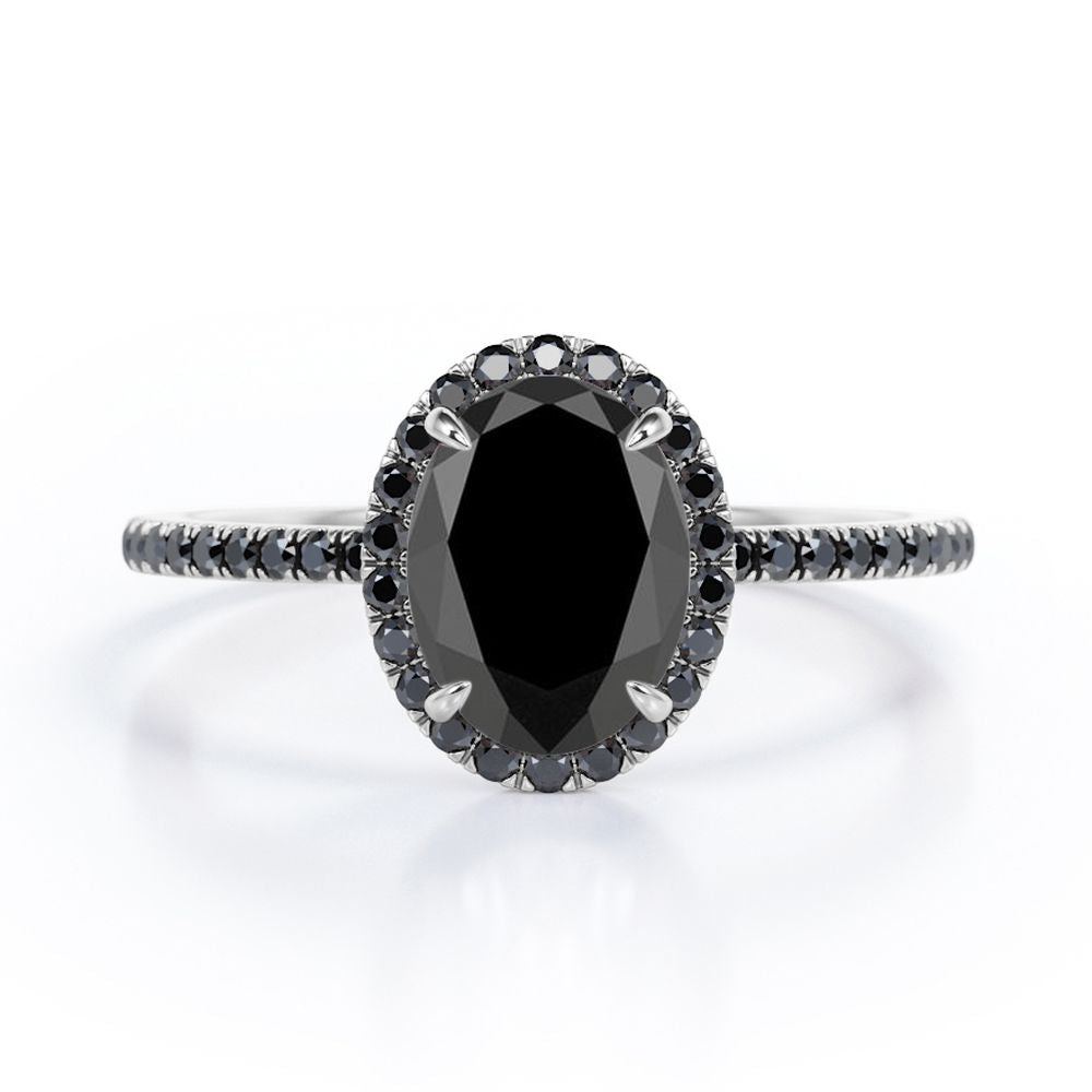 1.5 ct Oval Lab Black Diamond Halo Pave Engagement Ring