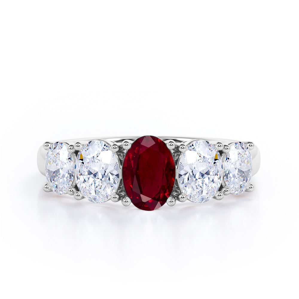 Oval Basket Set 1.25 carat Ruby and moissanite Fine Jewelry Ring in White Gold