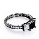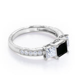 Past, Present and Future 1.25 Carat Princess Cut lab created Black Diamond Vintage Milgrain Engagement Ring In White Gold