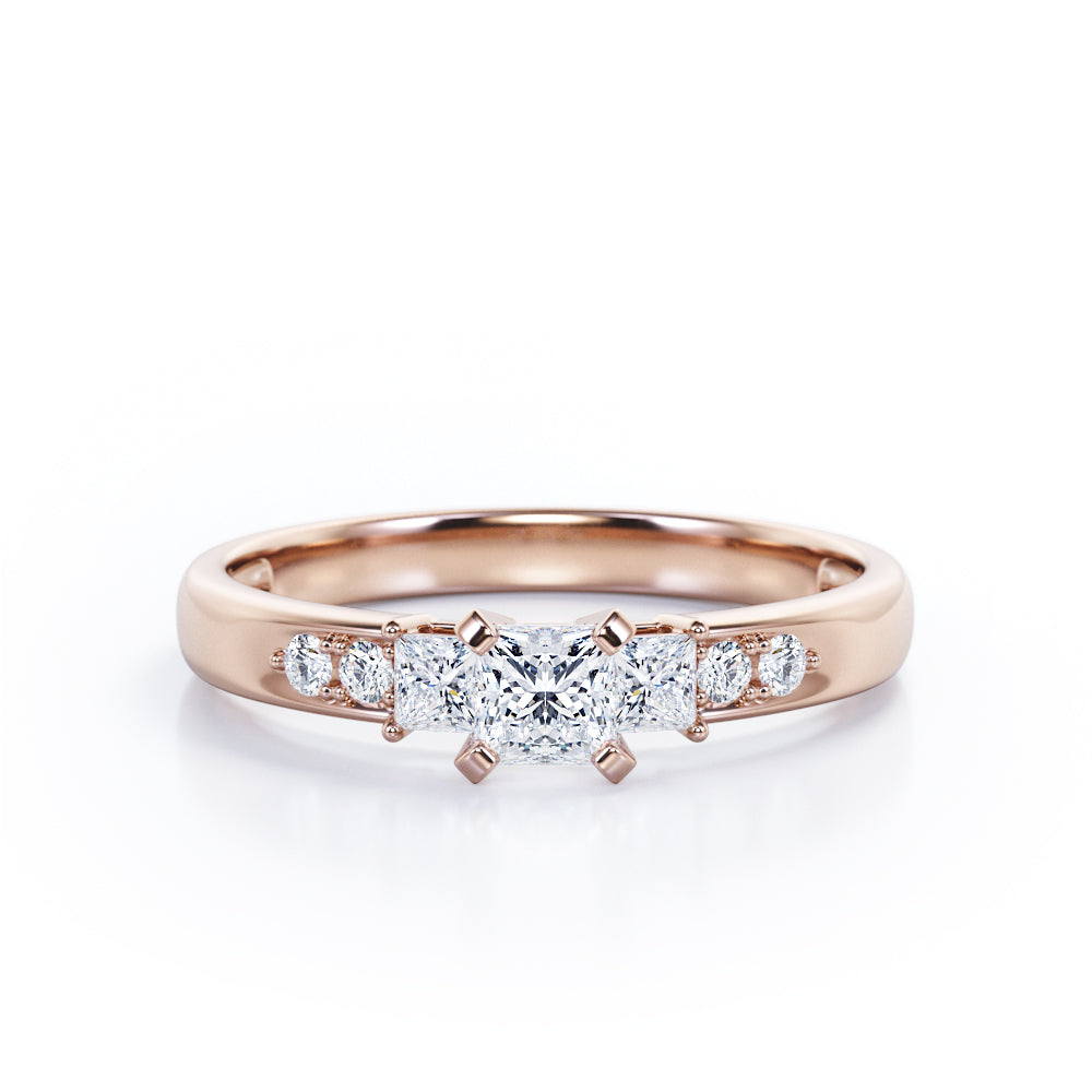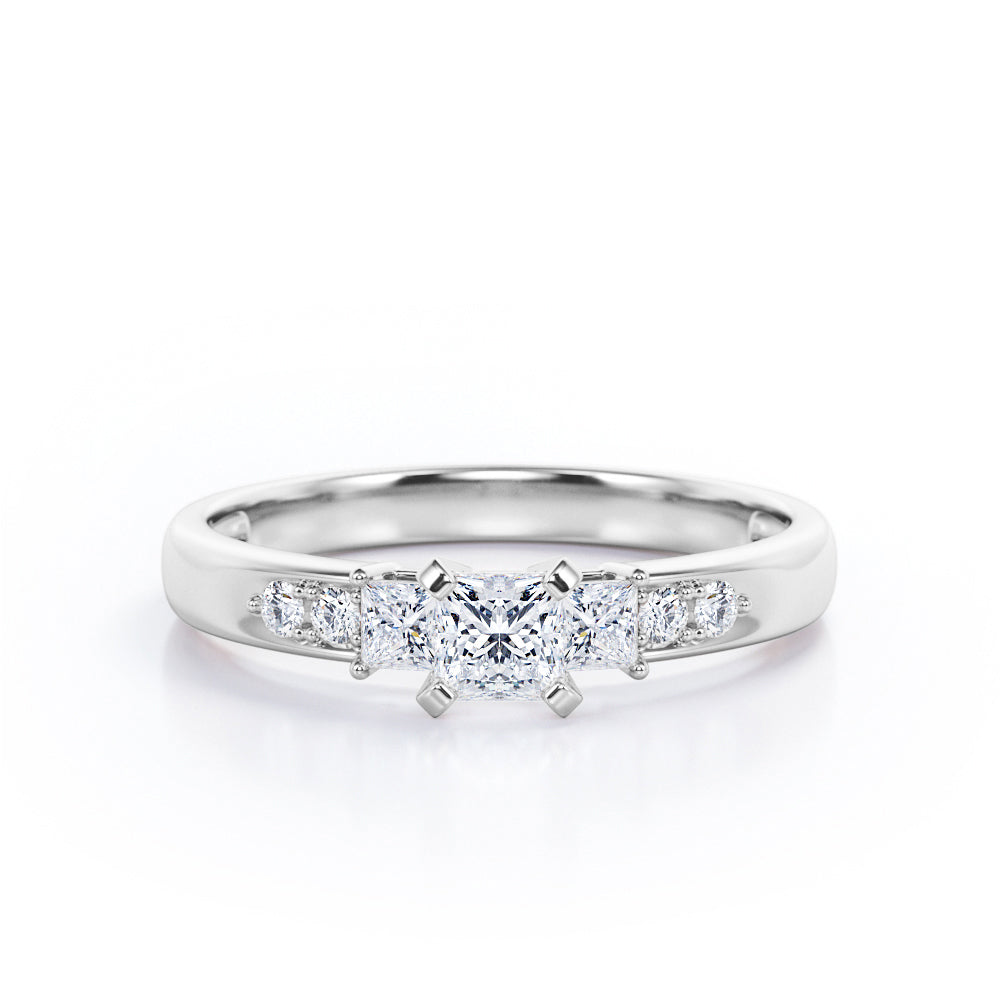 Certified 0.50 Ct Princess Lab Diamond Seven Stone Engagement Ring