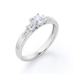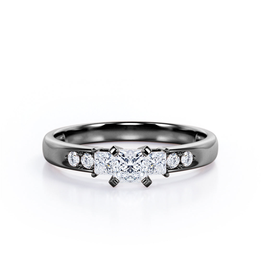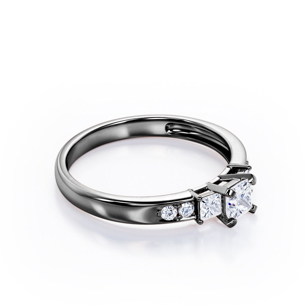Seven Stone 0.5 TCW Princess Cut Certified Lab Diamond Pave Engagement Ring in White Gold. Make your proposal unforgettable with this elegant princess cut Certified Lab Diamond ring. Featuring a 0.25 carat center princess cut Certified Lab Diamond and 0.25 carat side Moissanite set in solid white gold, this 0.5 carat ring showcases exceptional brilliance and clarity. Ideal for expressing charisma and uniqueness, it’s a stunning addition to any jewelry collection. Customizable in 10K, 14K, or 18K gold, available in white, rose, yellow, or black metal color as per your preference. Includes a 30-day full refund policy, 30-day free resizing, and a 6-month warranty. Perfect for engagements, anniversaries, or special occasions.