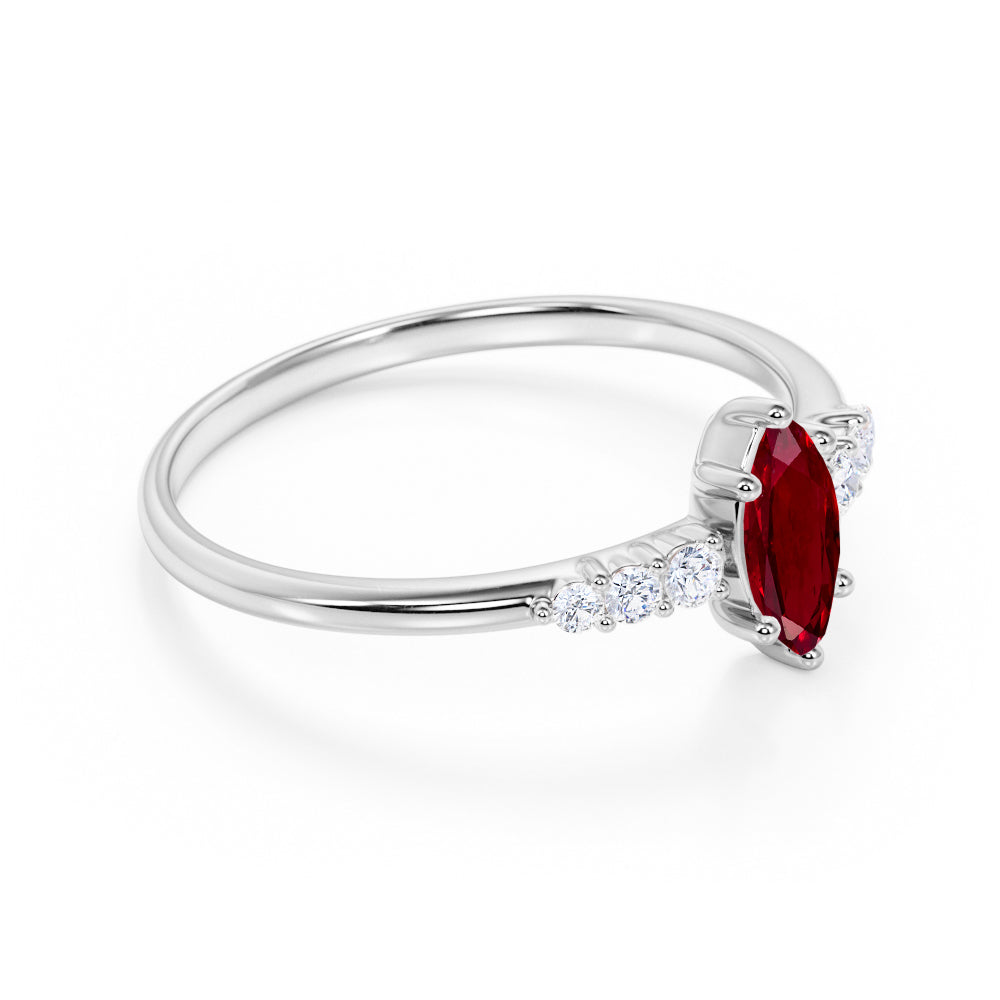 This Lab Ruby ring is the best gift for any occasions, birthday, proposal ring, friendship ring, statement ring or just a casual ring. This affordable Lab Ruby ring is the best for you, not just by the look but the price and quality as well. This Lab Ruby ring features an approximately 1 carat marquise cut Lab Ruby, surrounded by 0.15 carat side diamonds, for a total weight of 1.15 carats. Every order will be shipped within 2 weeks. On top of that it, includes a certificate of authenticity and our 30 days full refund policy. Each ring is made uniquely, therefore it may slightly vary from the pictures shown on our website. However, we guarantee you that your order will be made with the utmost care and passion.