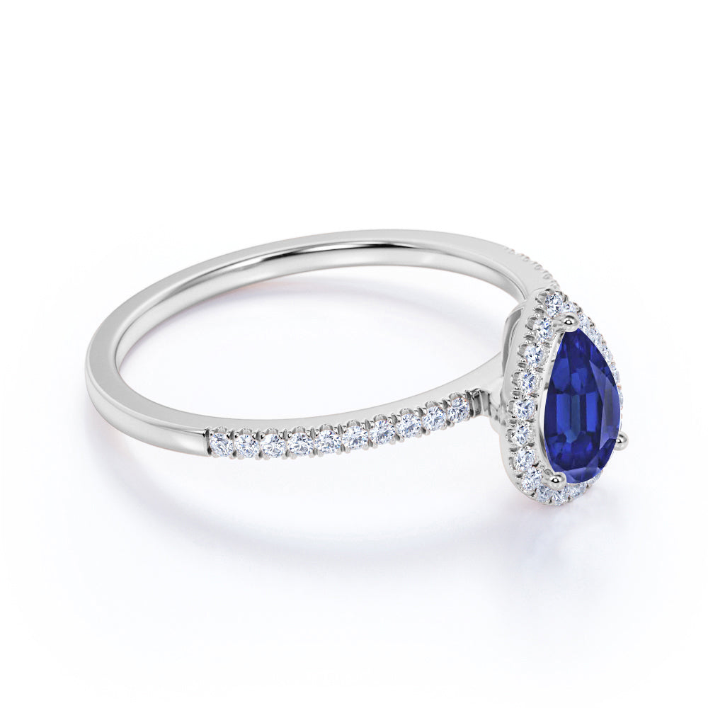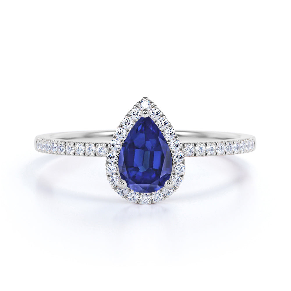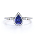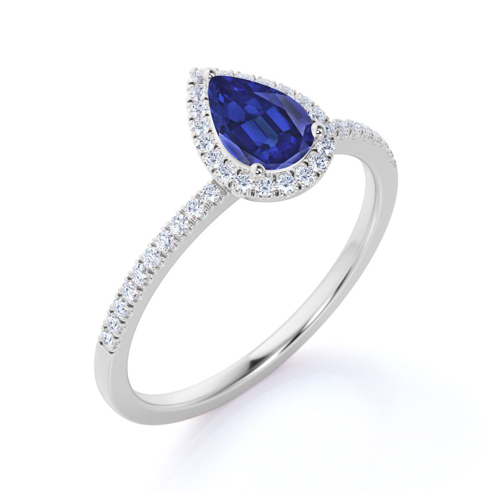 This ring can be a bridesmaid gift, vow renewal ring or an elegant 60th birthday gift. All of our rings are genuine, real and will be certified by our company. Perfect for valentine, mother's day, anniversary gift and at a very low and inexpensive prices. This blue sapphire ring features an approximately 1.50 carat pear shape natural blue sapphire, surrounded by .25 carat genuine side diamonds, for a total weight of 1.75 carats.