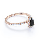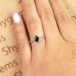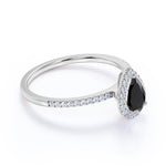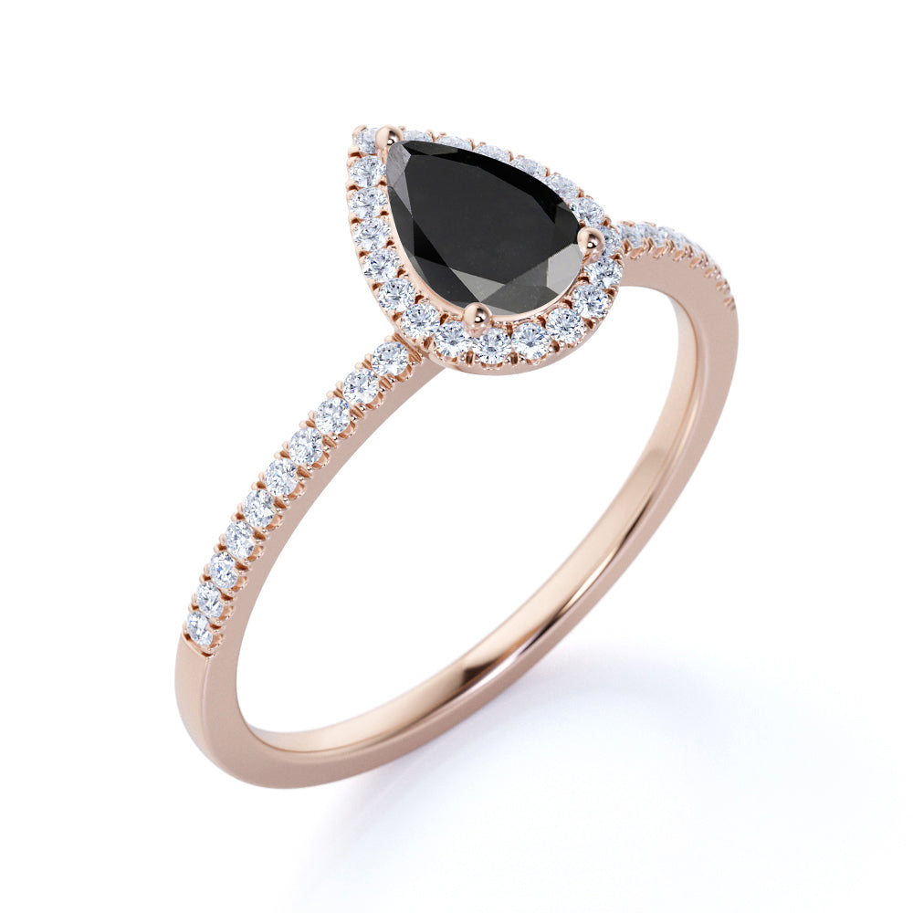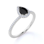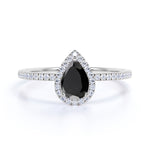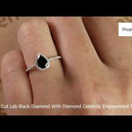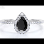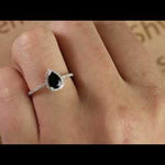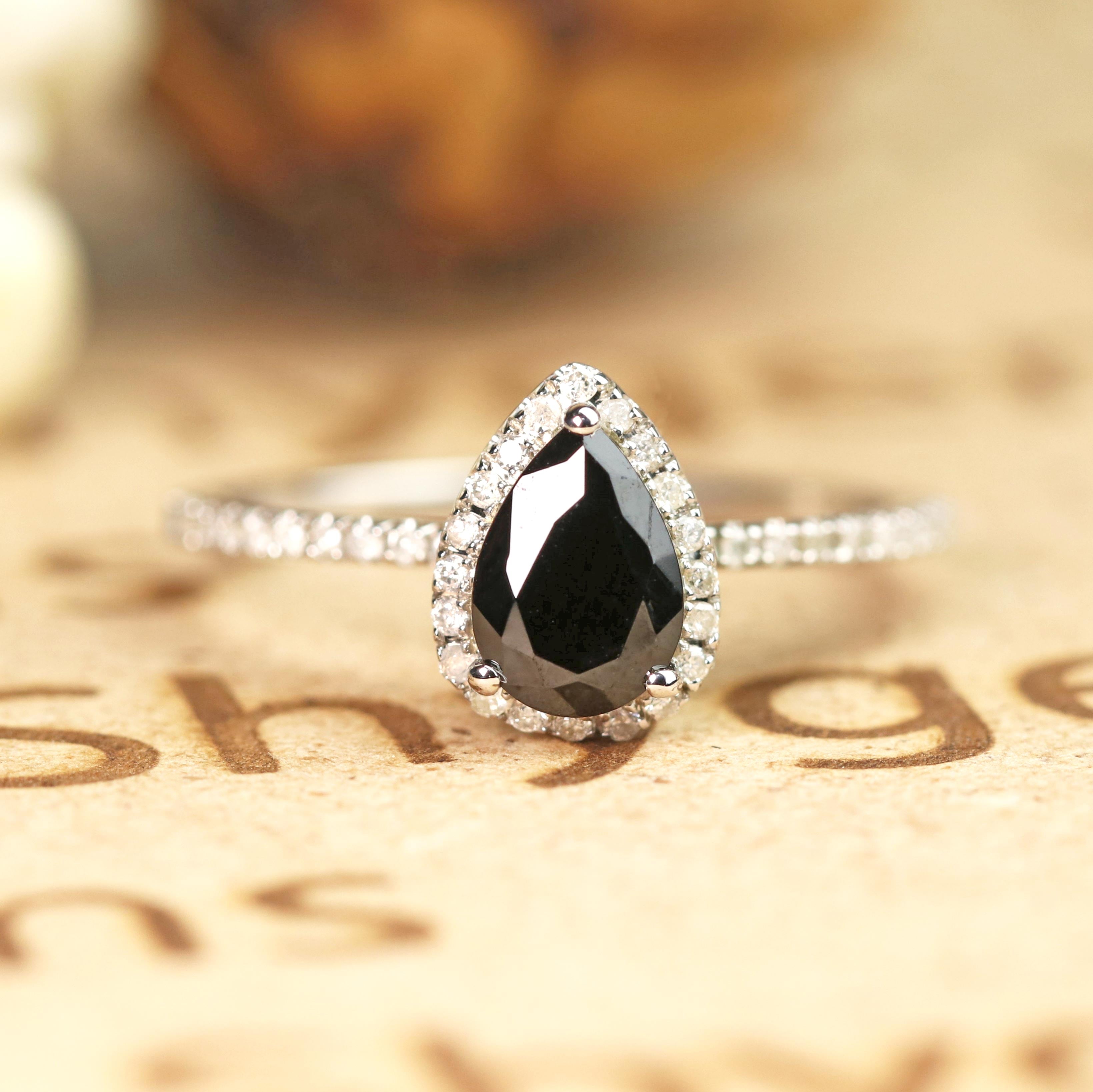This black diamond ring is the best gift for any occasions, birthday, proposal ring, friendship ring, statement ring or just a casual ring. This affordable black diamond ring is the best for you, not just by the look but the price and quality as well. This black diamond ring features an approximately 1.50 carat pear shape lab created black diamond, surrounded by .25 carat genuine side diamonds, for a total weight of 1.75 carats.
