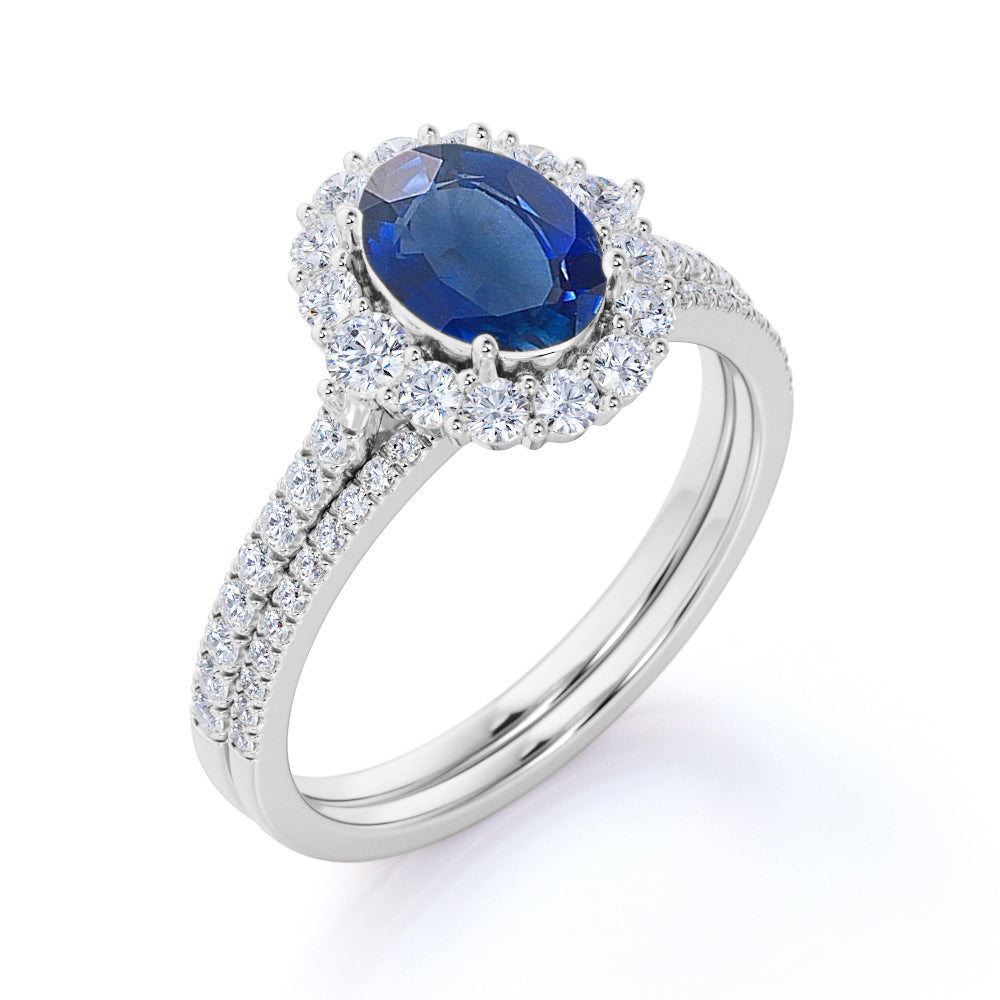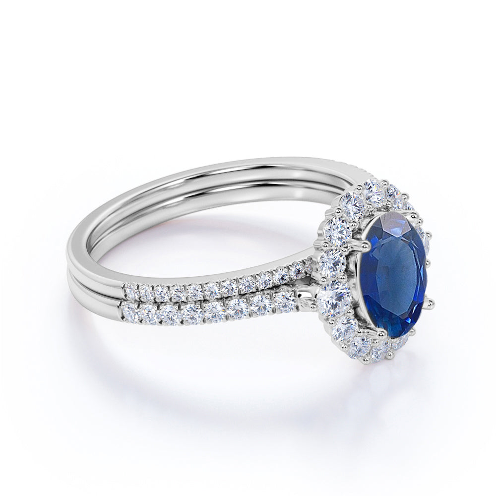 Halo 1.7 Ct Oval Cut Lab Sapphire Wedding Ring Set