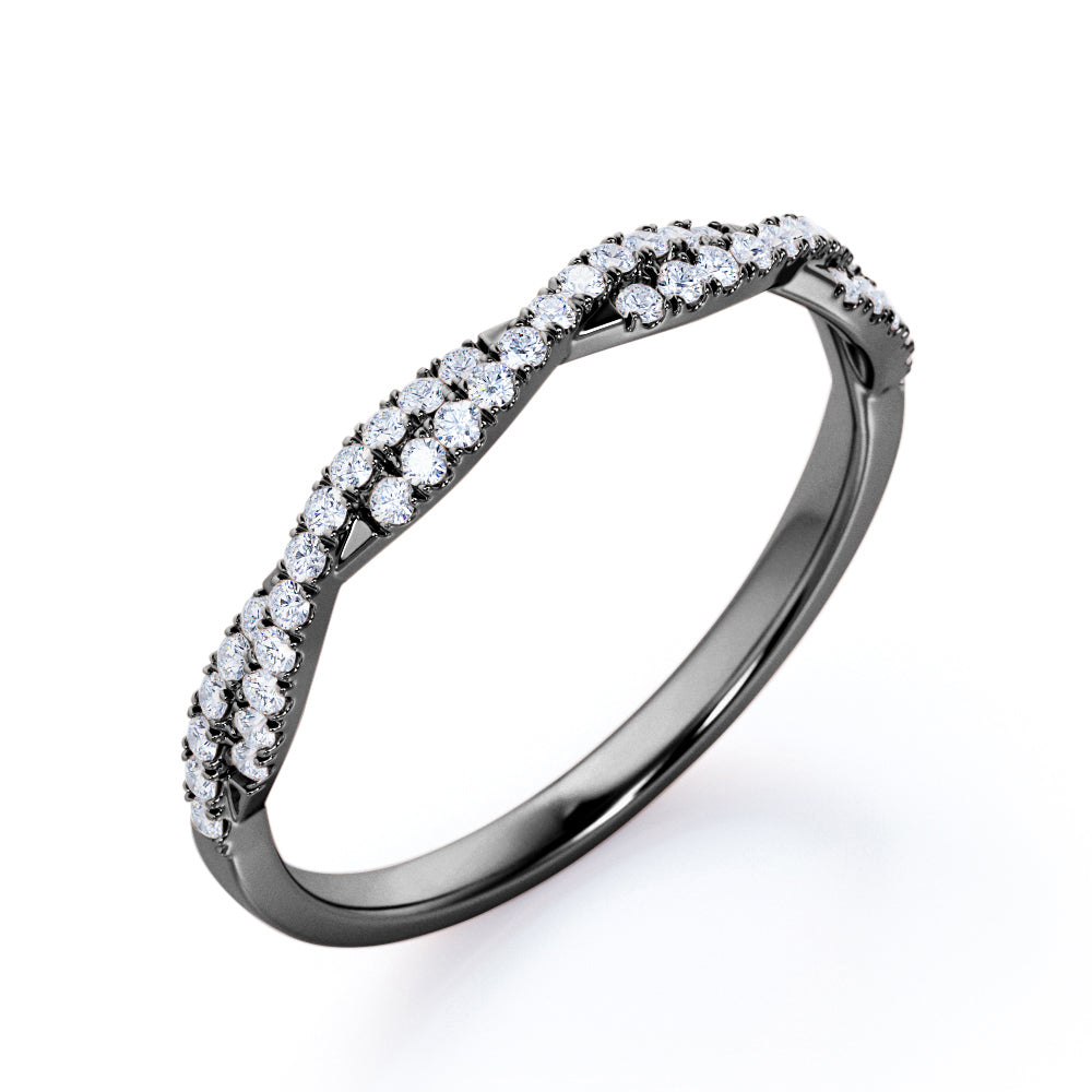 Pave Accented - 0.25 Carat Round Shaped - Semi Infinity Wedding Band - 18K Black Gold Plating over Silver