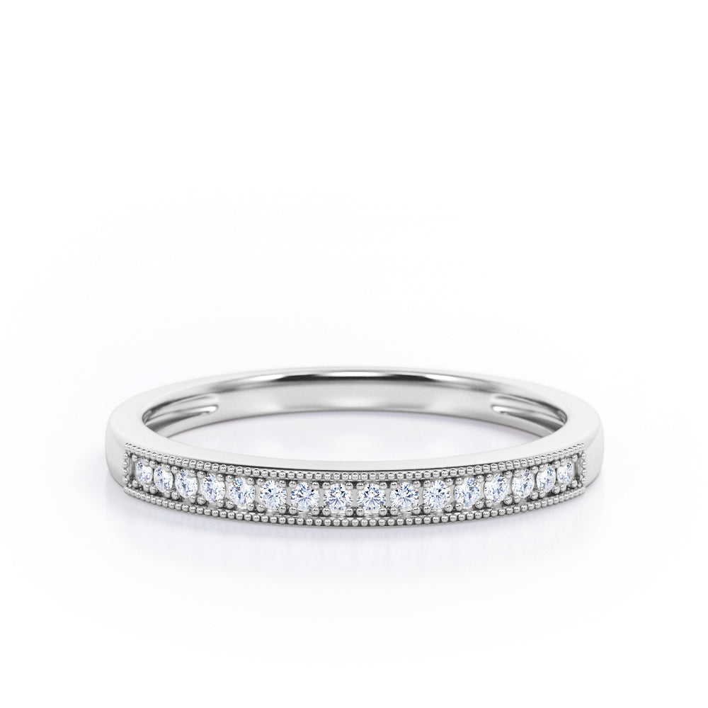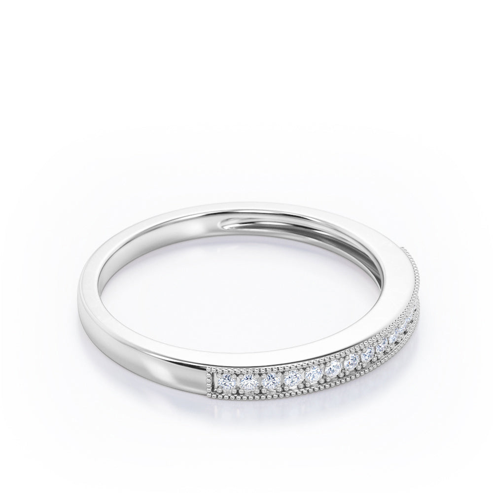 Pave 0.15 TCW Round Shape Milgrain Wedding Band