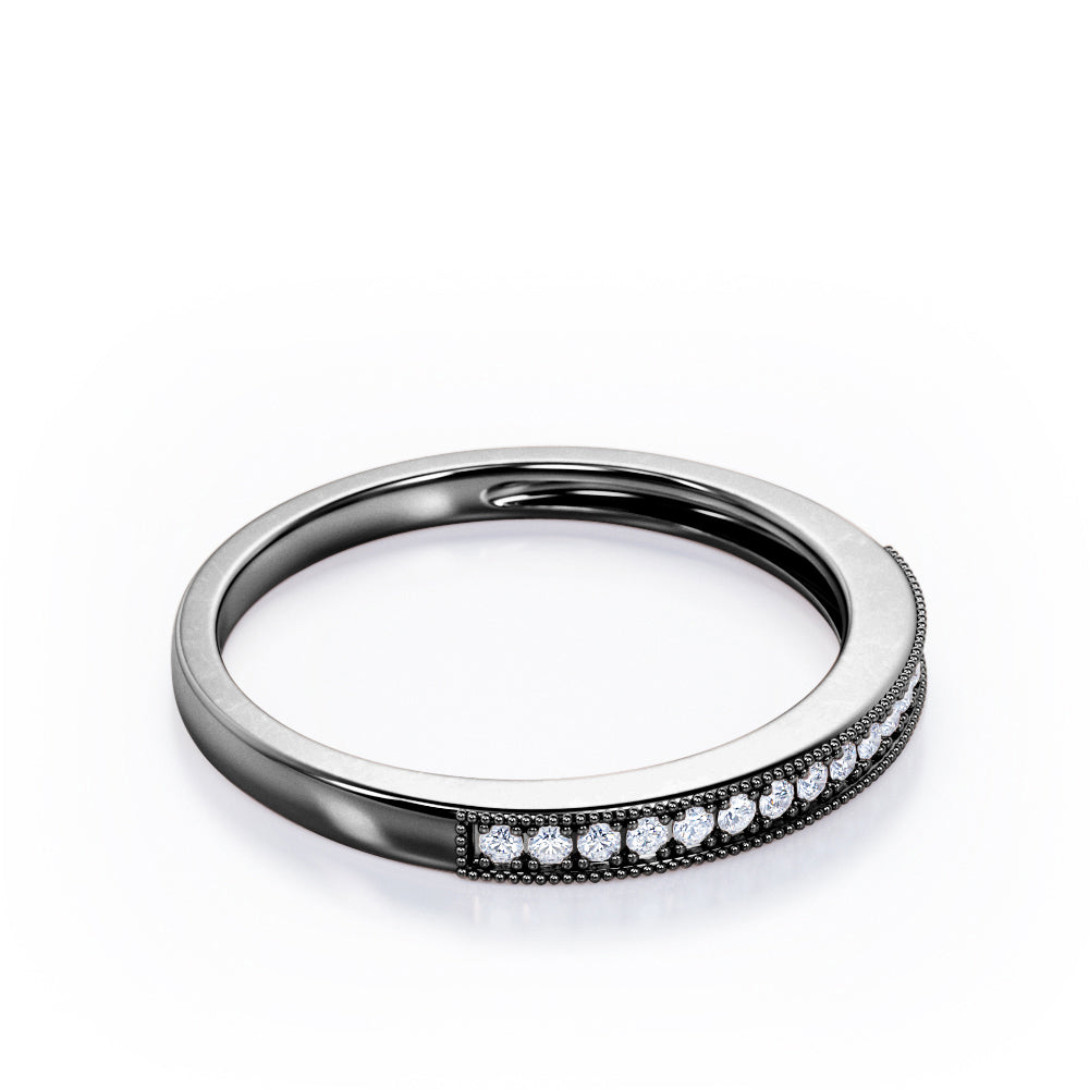 With this Pave 0.15 TCW Round Shape Milgrain Wedding Band, you can begin the most romantic chapter of your life. Hand-cut with deftness into a lovely shape round cut by our lapidary expertise, this splendid inexpensive Moissanite wedding band combines total 0.15 carat. Distinct and unusual, this Moissanite band is an excellent choice. with its dazzling beauty, this Moissanite wedding band will bring joy and good energy to its wearer. Beautiful and affordable, this Moissanite band for women is a great choice for any woman's jewelry collection. If you are looking for a Moissanite ring for any special event, such as a birthday, an engagement, or a marriage proposal, this affordable Moissanite wedding band , the birthstone ring for April, symbolically represents love and dedication, is the best gift you can give to your significant other. Also, this anniversary Moissanite wedding band can be customized, so customers can choose one of metal colors between white gold, rose gold, yellow gold, and black gold. Let's show her how much you care by giving her this Moissanite band for women.