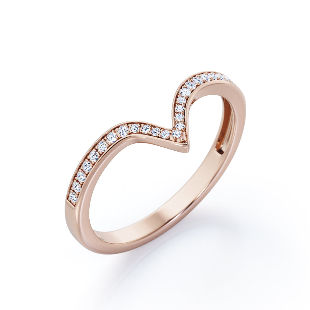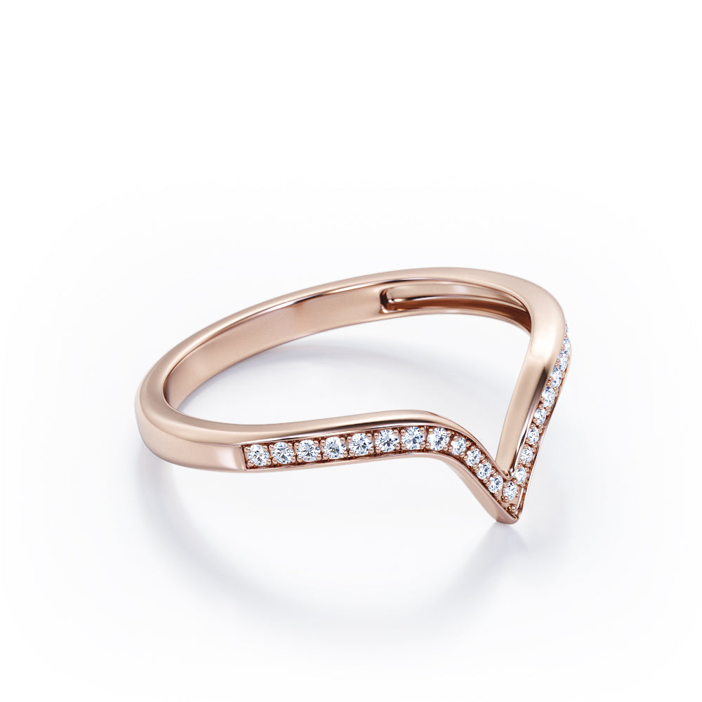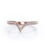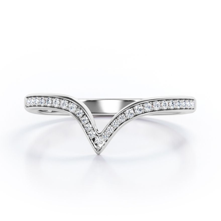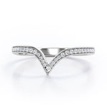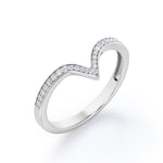 Be highly stylish with this Pave Channel - 0.15 TCW Round Cut Diamond - V Shape Wedding Band in White Gold. Hand-cut with deftness into a lovely shape round cut by our most talented jewelers, this wonderful diamond wedding ring band comprises total 0.15 carat diamond on solid white gold. Distinct and unusual, this gold diamond wedding band is an excellent choice. This diamond band will bring joy and good energy to its wearer. This anniversary diamond wedding band is stunning and inexpensive, thanks to its reasonable price. If you are looking for a diamond ring for any special event, such as a birthday, an engagement, or a marriage proposal, this diamond band for women a great choice. Also, this affordable diamond wedding band can be customized, either in 10K rose gold, 10K white gold, 14k White gold or 14k Rose gold, upon customer request. Let's show her how much you care by giving her this anniversary diamond wedding band.