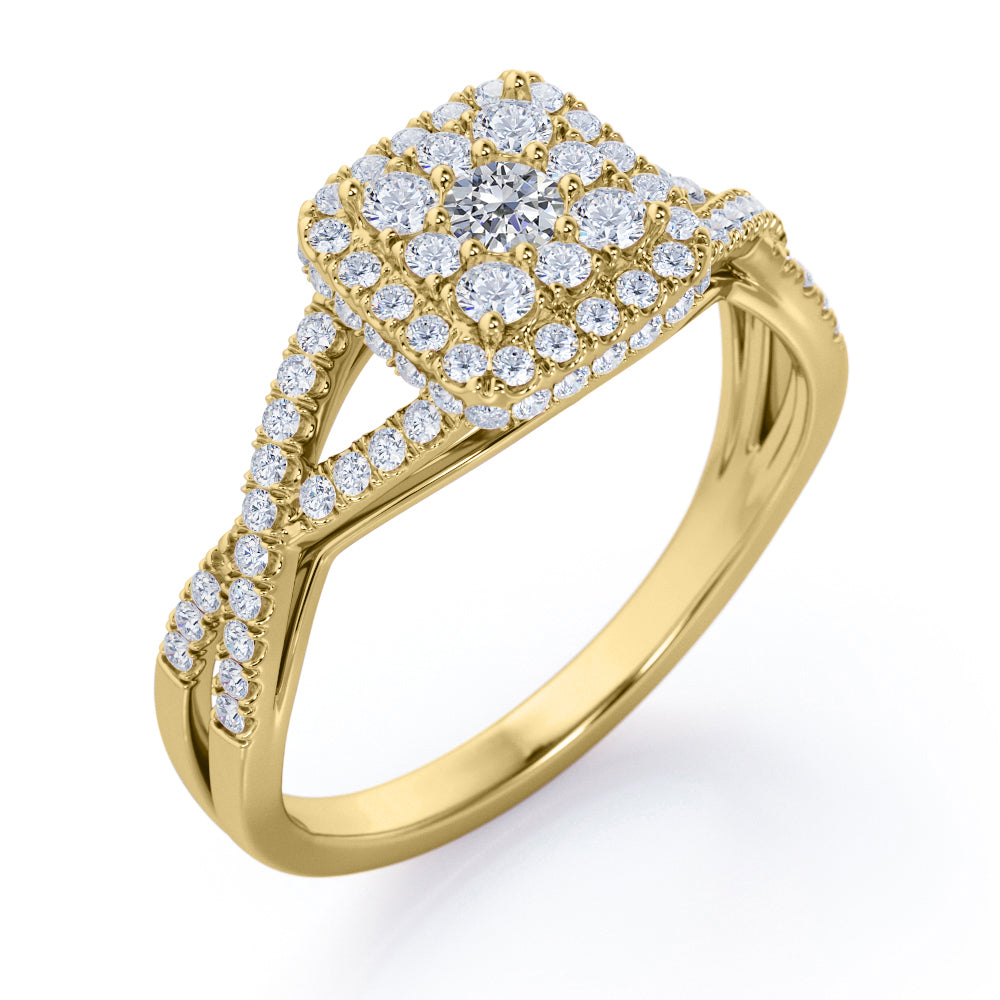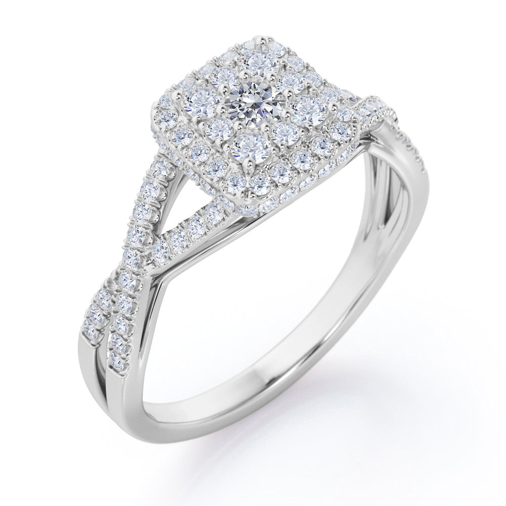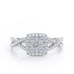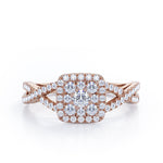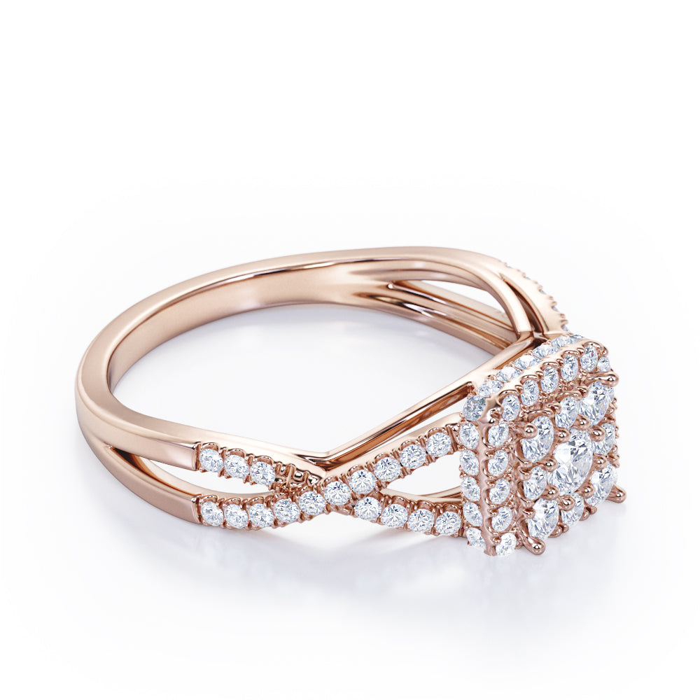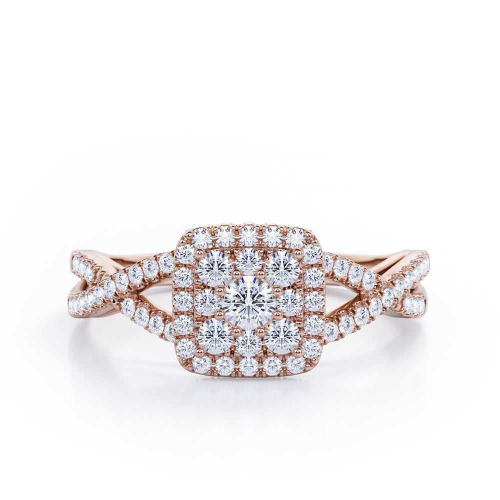 Pave Crossover - 1.25 Carat Round Cut Moissanite and diamond - Flush Cluster Halo Engagement Ring in Rose Gold