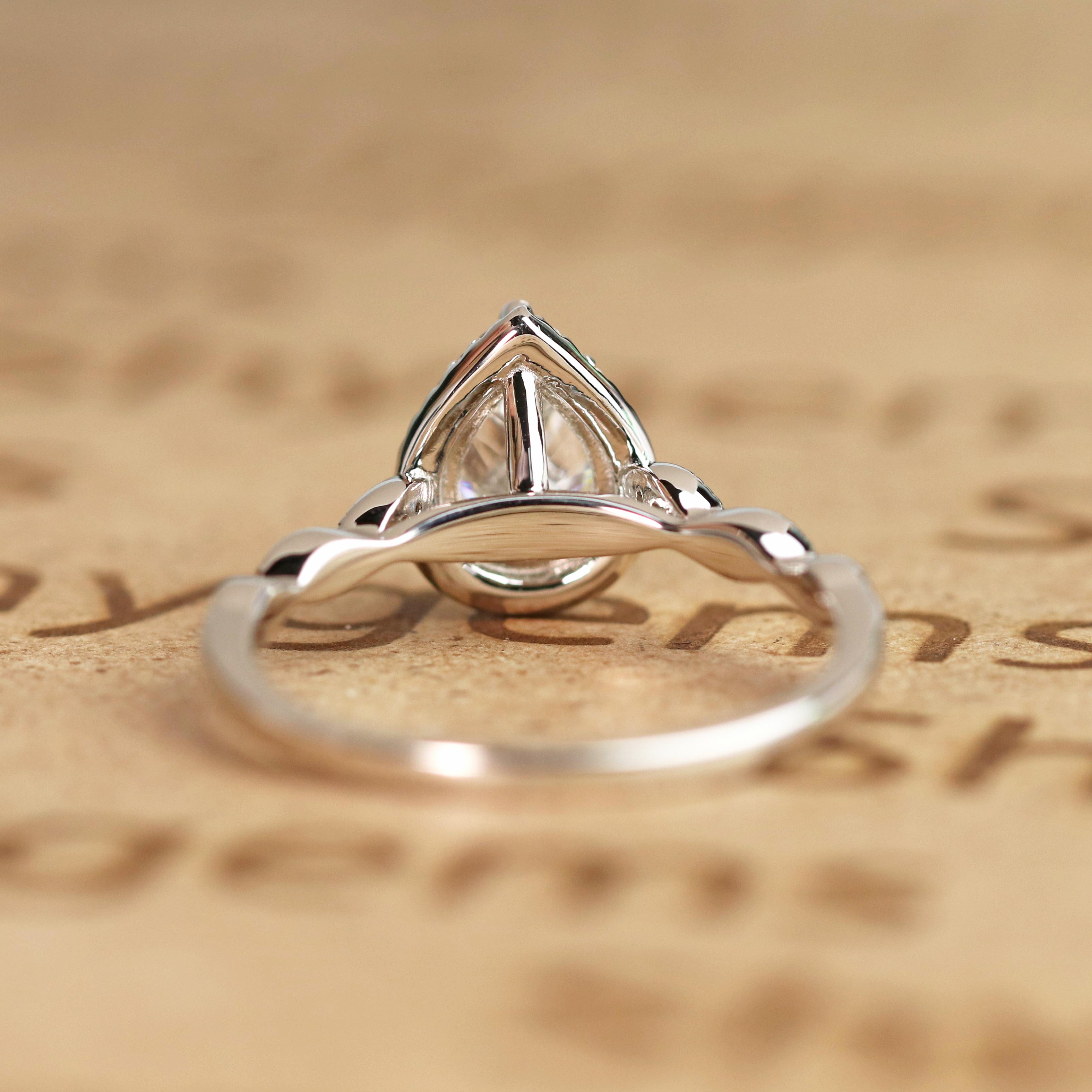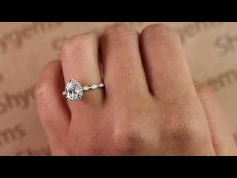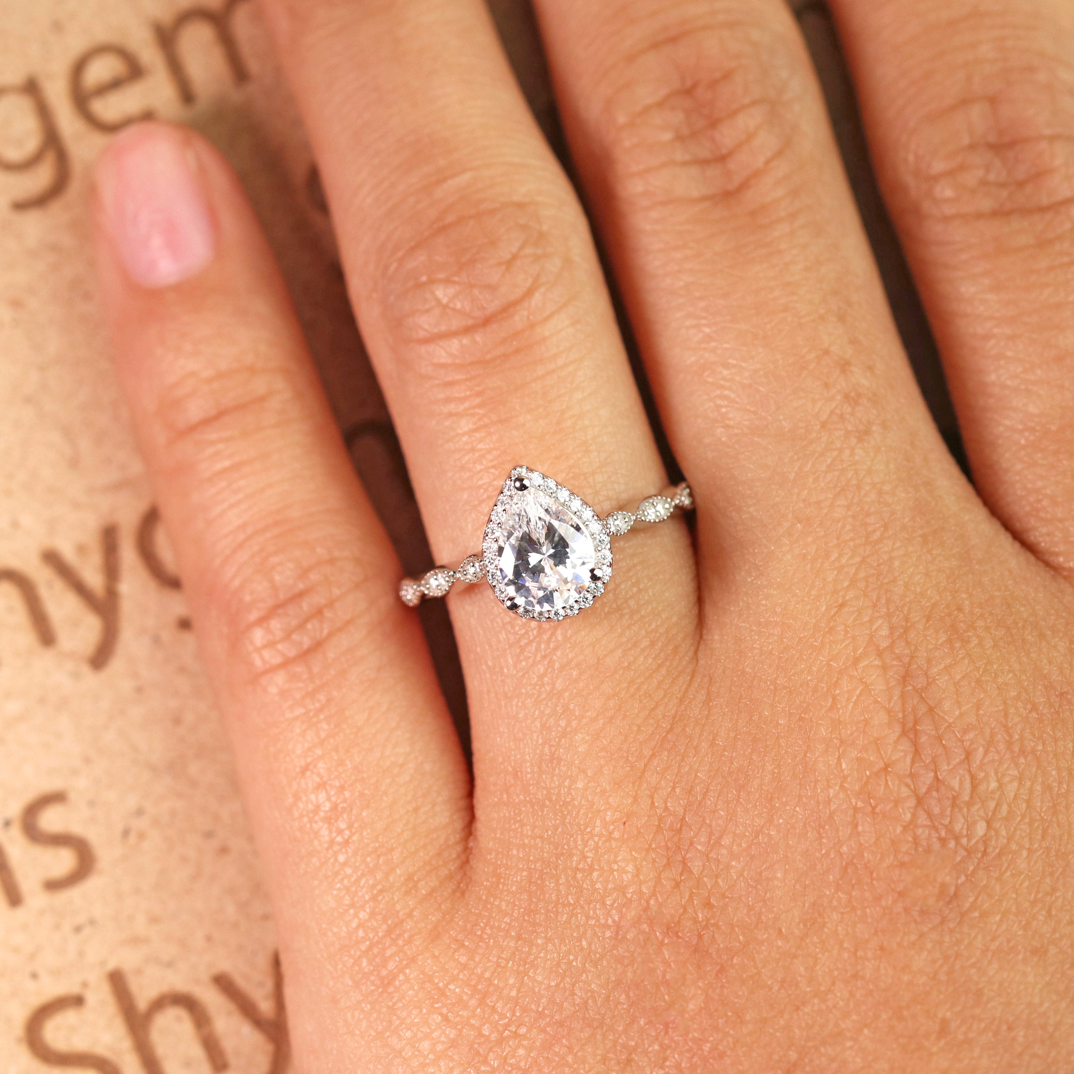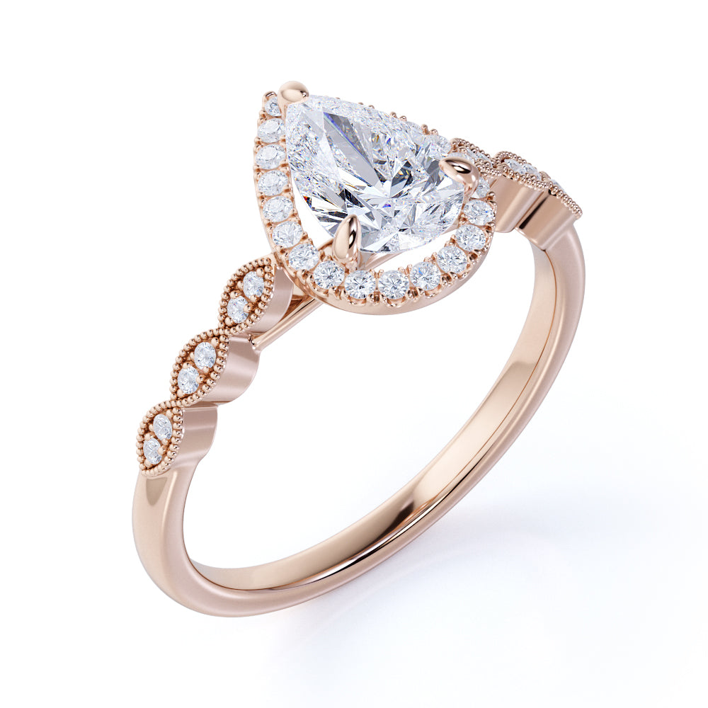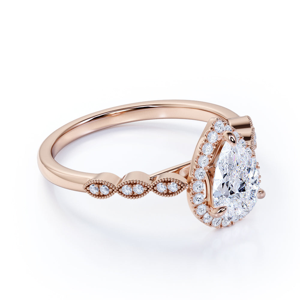 Vintage 1.25 Carat Moissanite Pear Cut Halo Engagement Ring