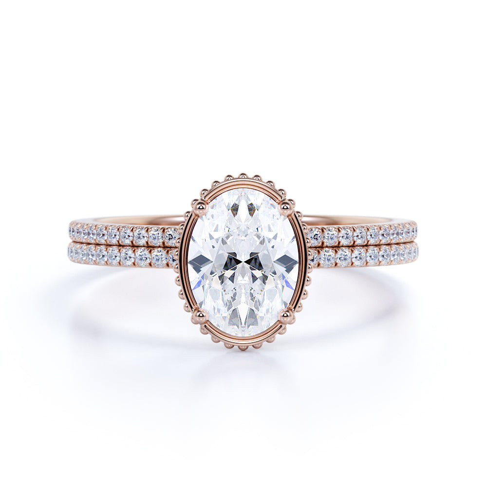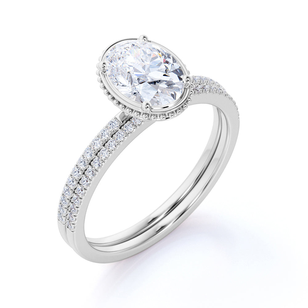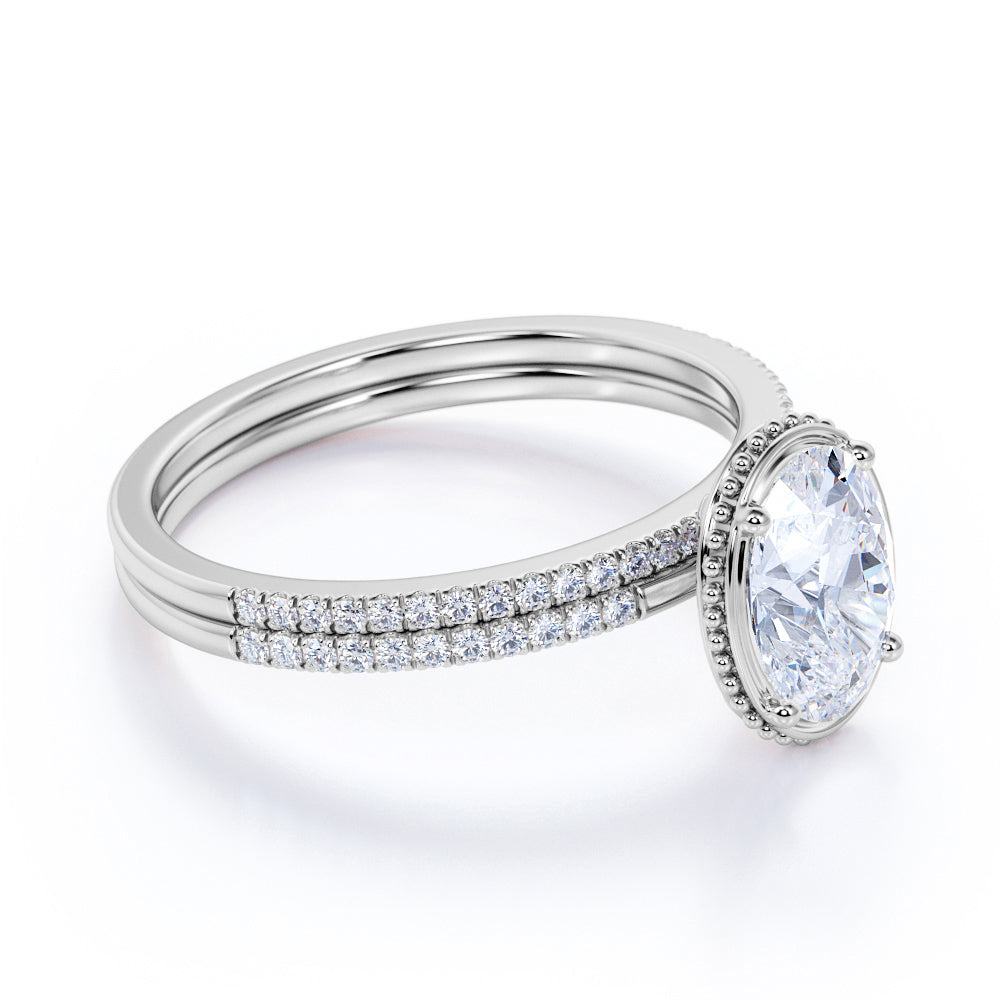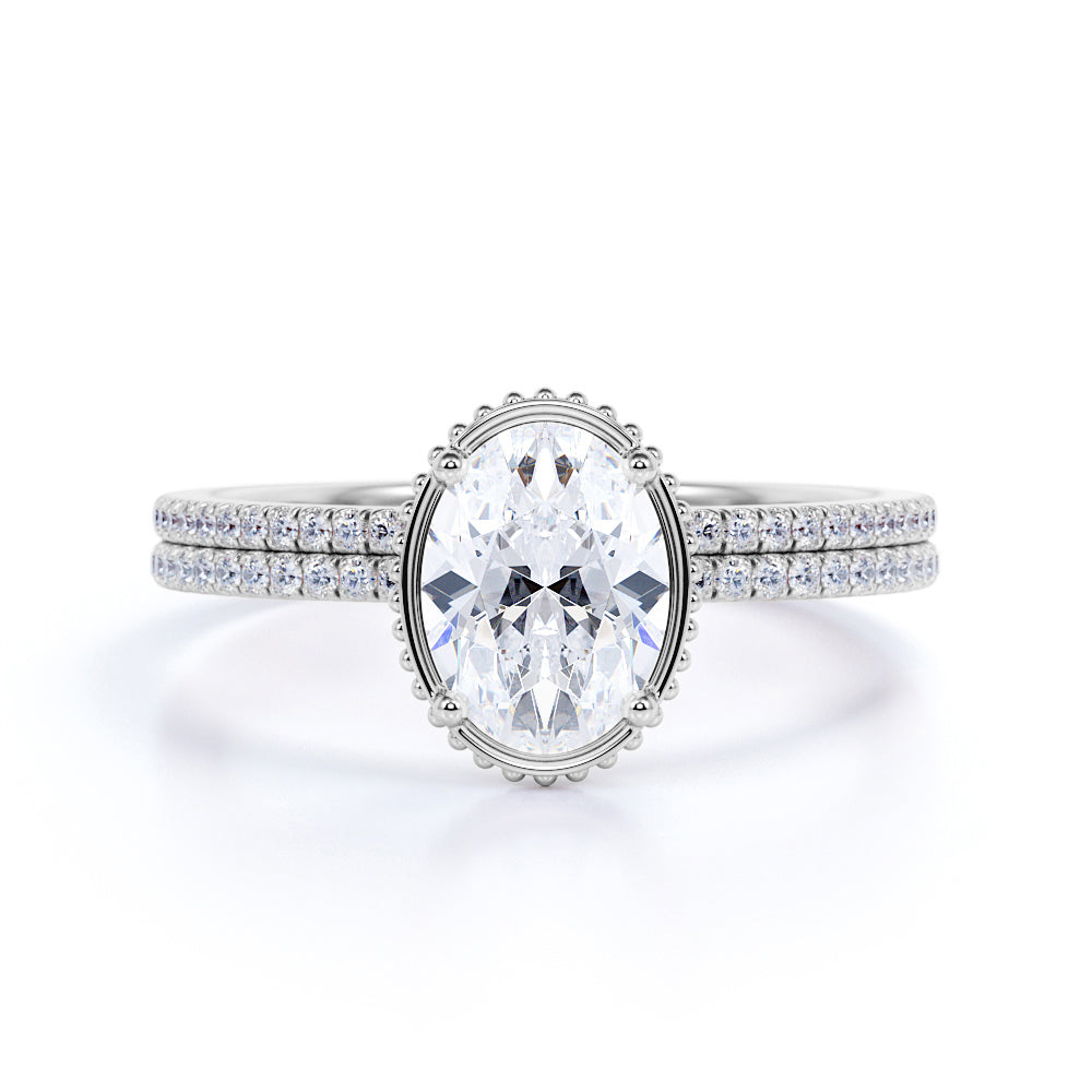 Pave 1.25 Carat Oval Cut Moissanite Bridal Set
