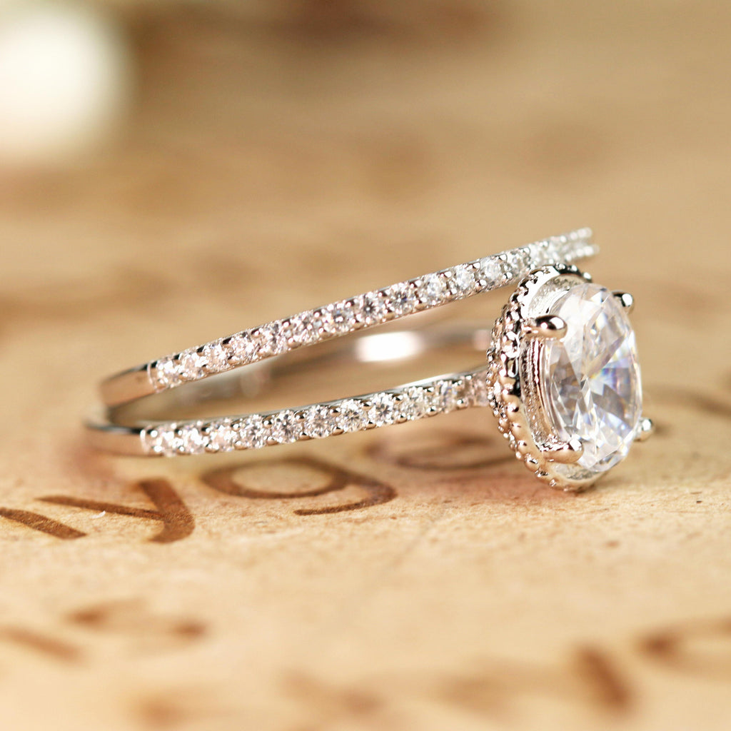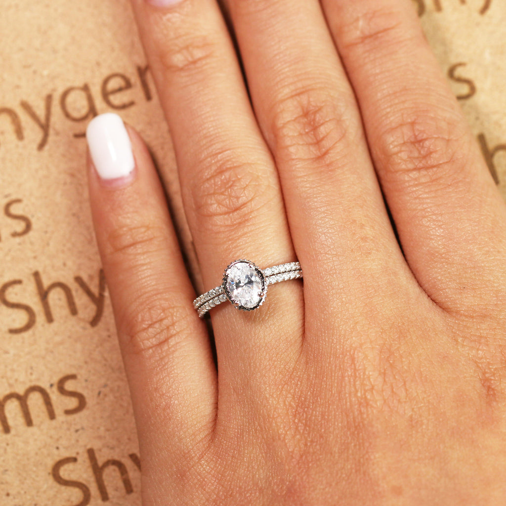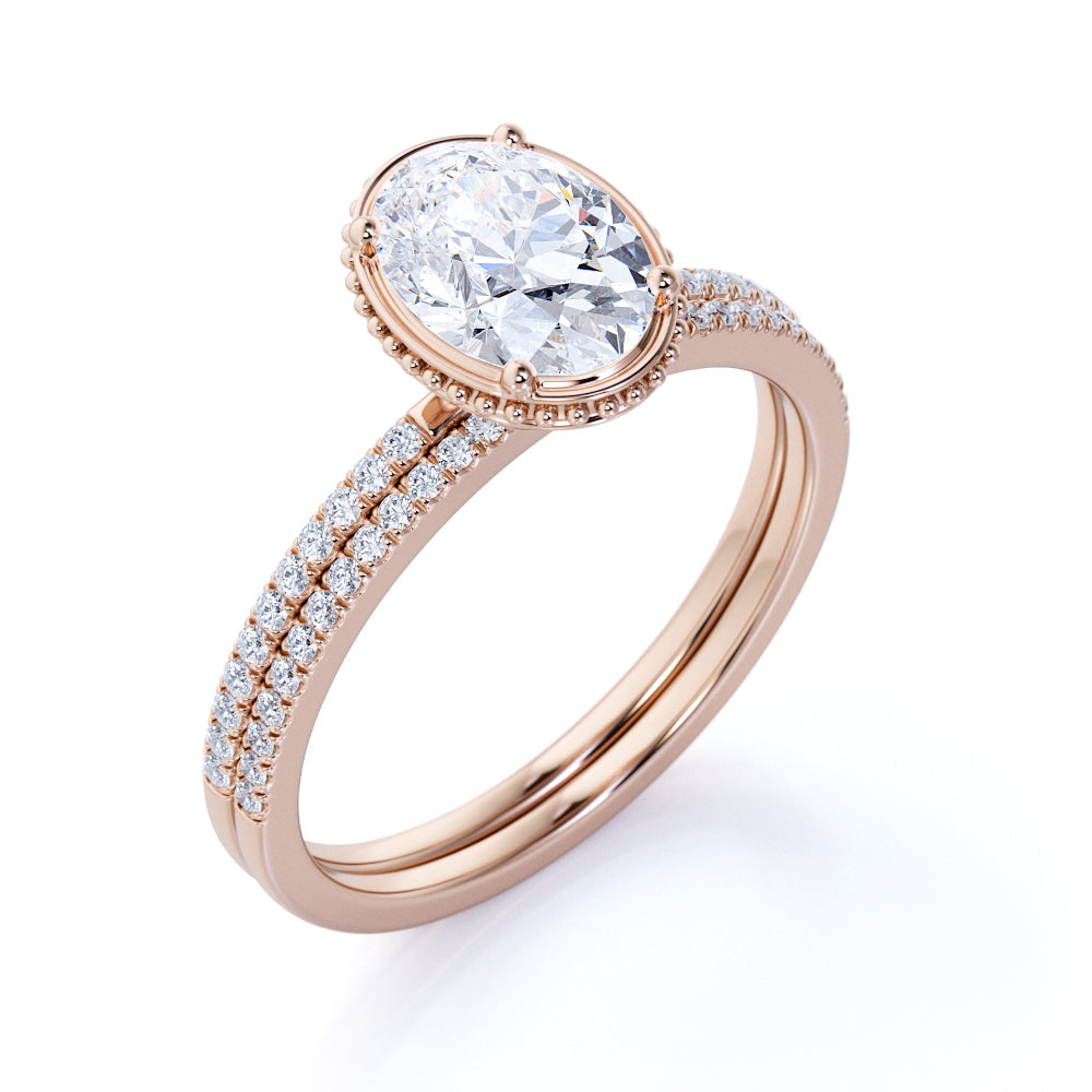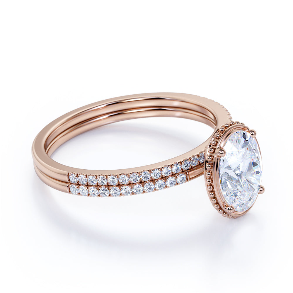 Pave 1.25 Carat Oval Cut Moissanite Bridal Set