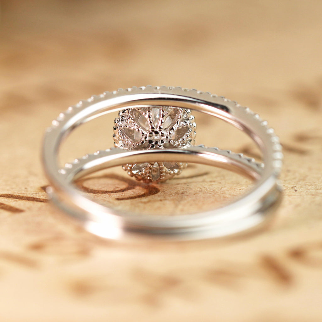- The Moissanite and Diamond Bridal Ring Set can be made in either 10k, 14k, or 18k real solid gold and in any color between Rose, White or Yellow.