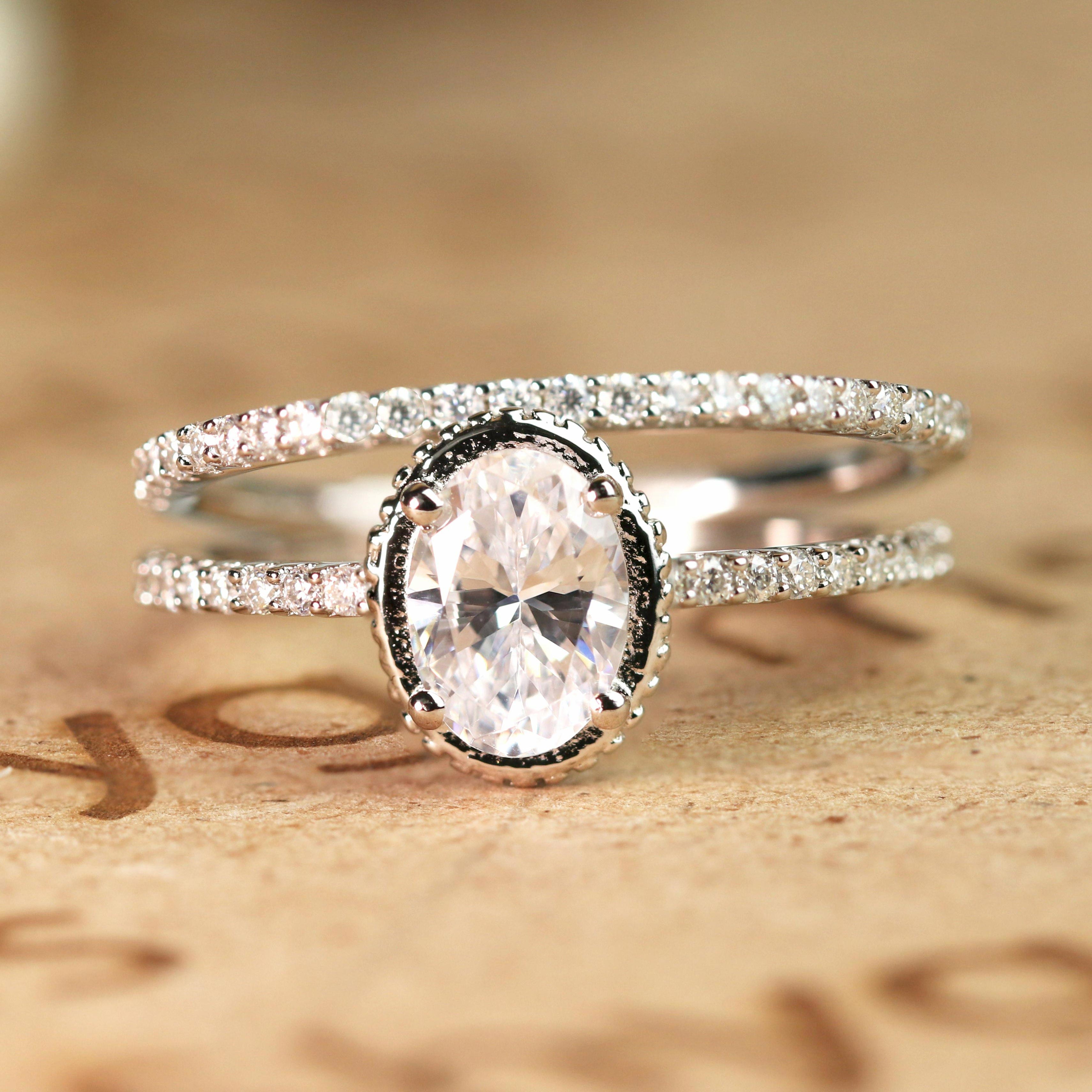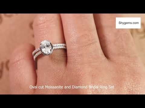 Perfect 1.25 Carat Oval cut Moissanite and Diamond Bridal Ring Set in White Gold. This is a beautiful vintage design sparkling white Moissanite bridal ring set, perfect for her, features total 1.25 carats perfect real white Moissanite and glittering diamonds and is made in solid 10k White Gold. The beautiful wedding ring band is handmade and personalized by me or one of my other skilled jewelry associates with over 15 years of experience.