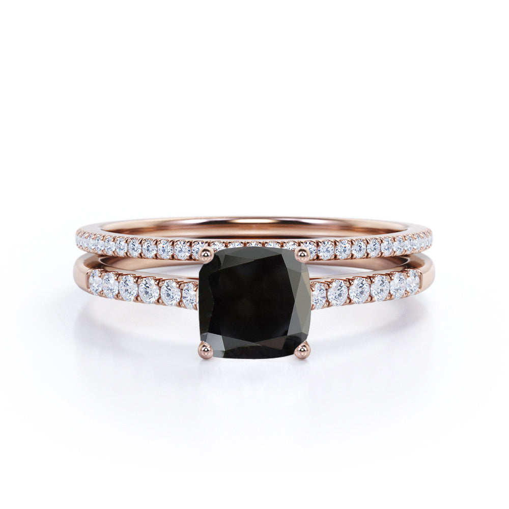 Perfect 1.50 Carat Princess cut Lab Black Diamond Bridal Ring Set in Rose Gold