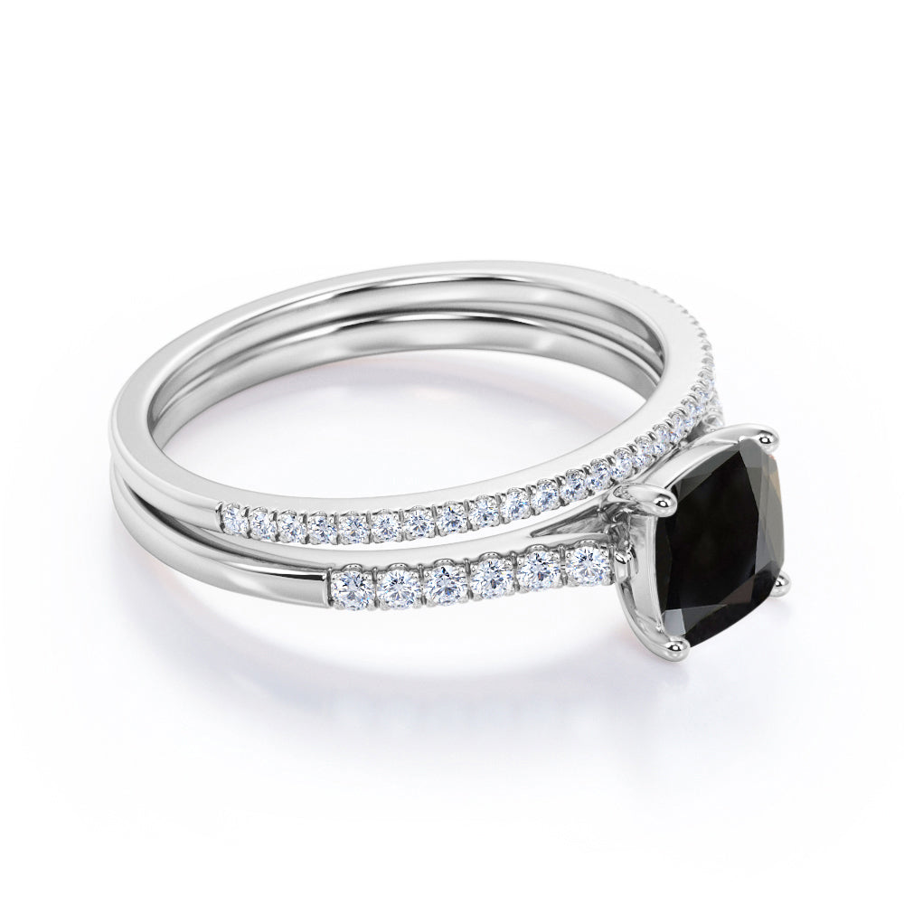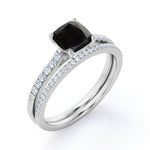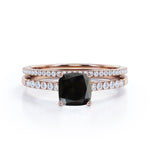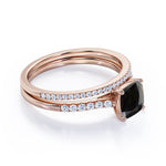 Perfect 1.50 Carat Princess cut Lab Black Diamond Bridal Ring Set in Rose Gold