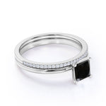 Perfect 1.25 Carat Princess cut Lab Black Diamond Bridal Ring Set in White Gold