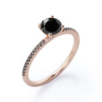 Make every day a cloud nine day with this Perfect 4-Prong 1.5 TCW Round-Shaped Lab Created Black Diamond Pave-Accented Engagement Ring in White Gold. Skillfully hand-cut into a nice round cut by our experts in lapidary, this splendid black diamond band integrates total 1.5 carat lab created black diamond on solid white gold. Distinctive and extraordinary, this black diamond engagement ring is well-suited for those who are not quite into normal lifestyle. Reflective properties of this black diamond promise ring will enhance happiness and attract positive vibes. This black diamond engagement ring is beautiful and accessible since it is available at an affordable price. This black diamond jewelry can be a perfect gift for any occasion like engagements, Valentine's day, mother's day or anniversary. Additionally, this black diamond jewelry can be customized to your own choice of metal colors: white gold, rose gold, yellow gold or black gold in 10k and 14k gold metal options. Let's fulfill your love story with this black diamond jewelry and, surely, she will not regret it.