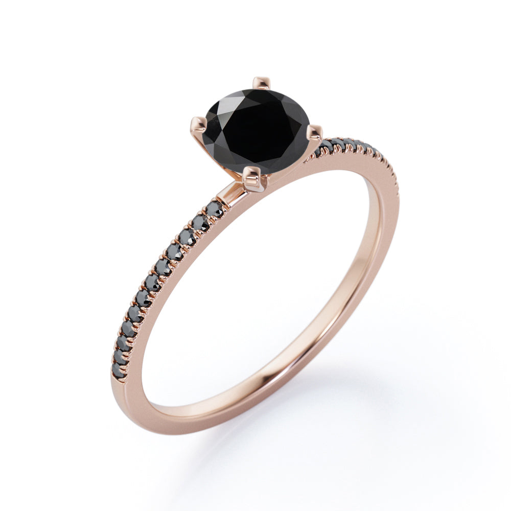 1.5 ct Round Lab Black Diamond 4-Prong Pave Engagement Ring