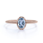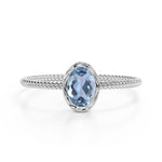 Perfect Bezel Setting 1 Carat Oval Aquamarine and Twisted Rope Engagement Ring in White Gold