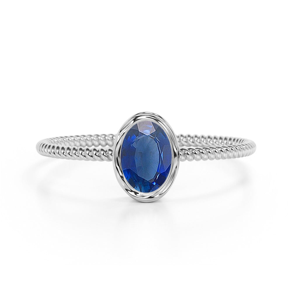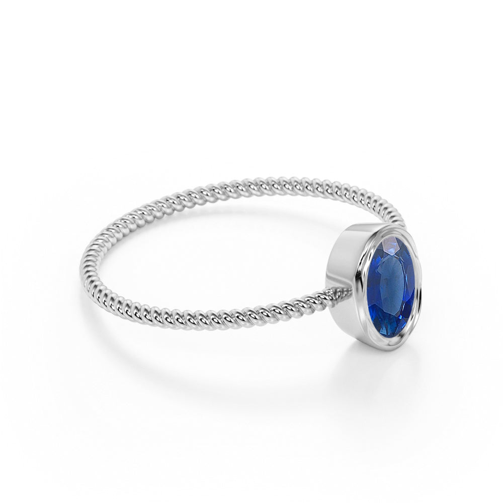 Perfect Bezel Setting 1 Carat Oval Purplish Blue Sapphire and Twisted Rope Engagement Ring in White Gold