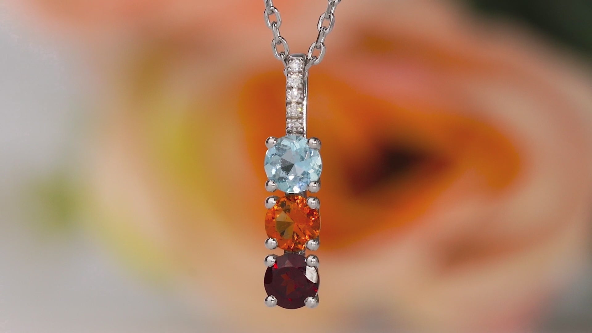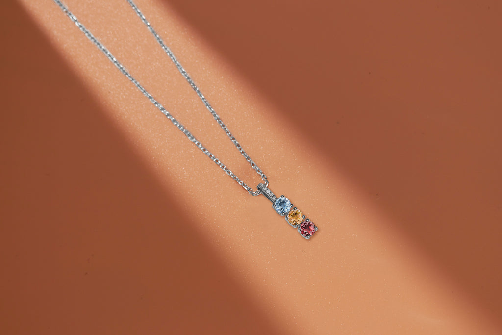 Perfect Vertical Multi Birthstone and Moissanite Bar Pendant Necklace for women in 18k white gold over silver