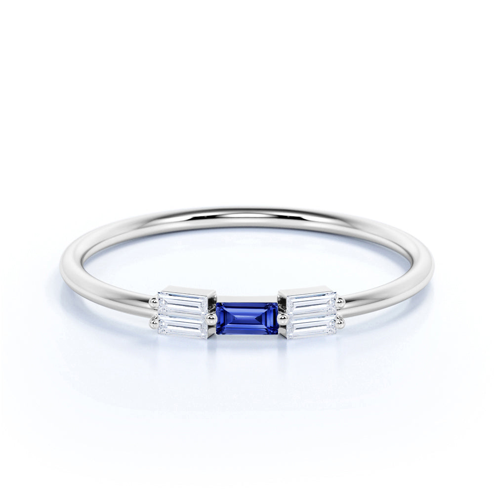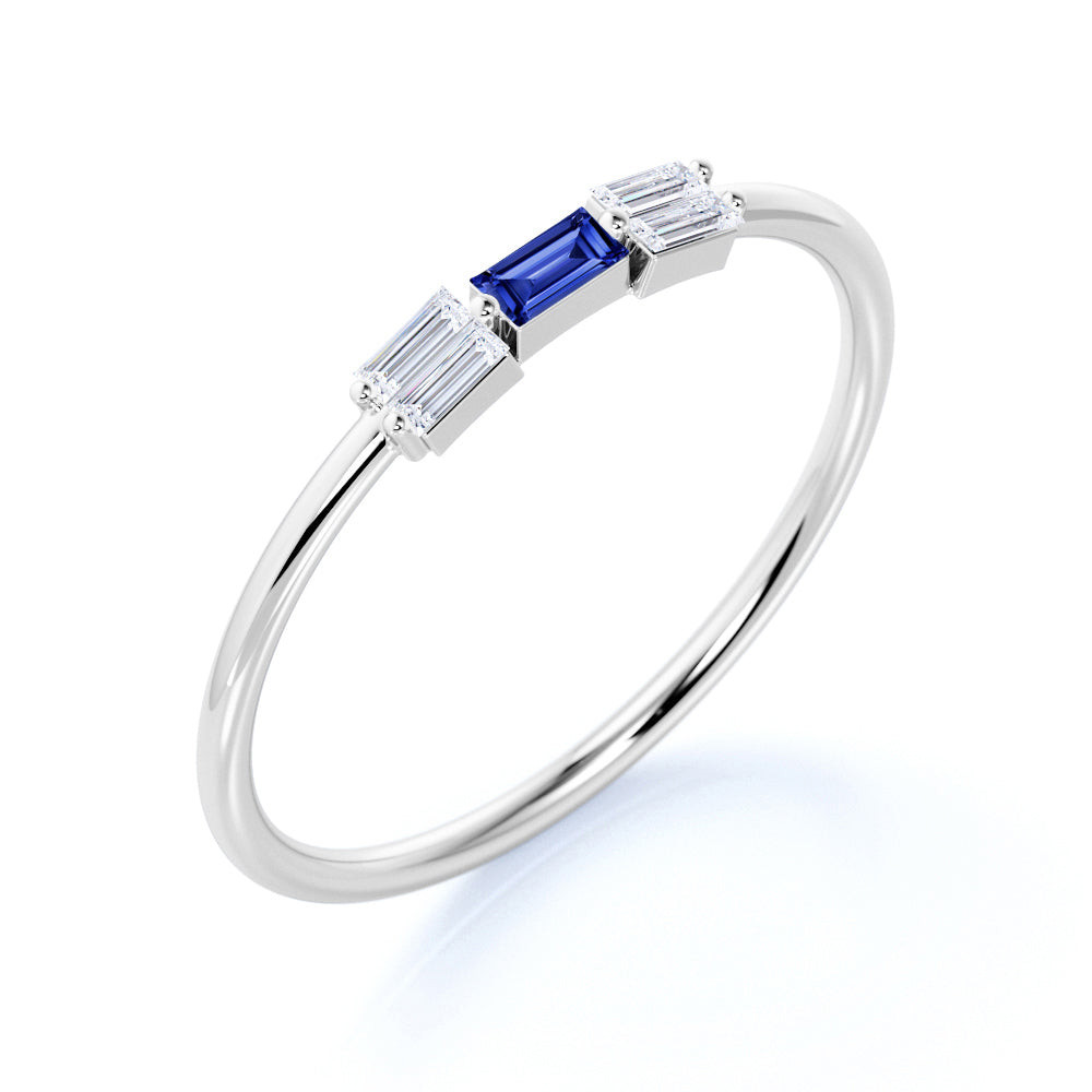 This ring can also be a bridesmaid gift, vow renewal ring or an elegant 60th birthday gift. Uniqueness makes you stand out and this unique blue sapphire ring is perfect for you. This little tiny royal blue sapphire ring features an approximately .30 carat emerald cut certified blue sapphire, surrounded by .40 carat authentic diamond accent, for a total weight of 0.70 carats.
