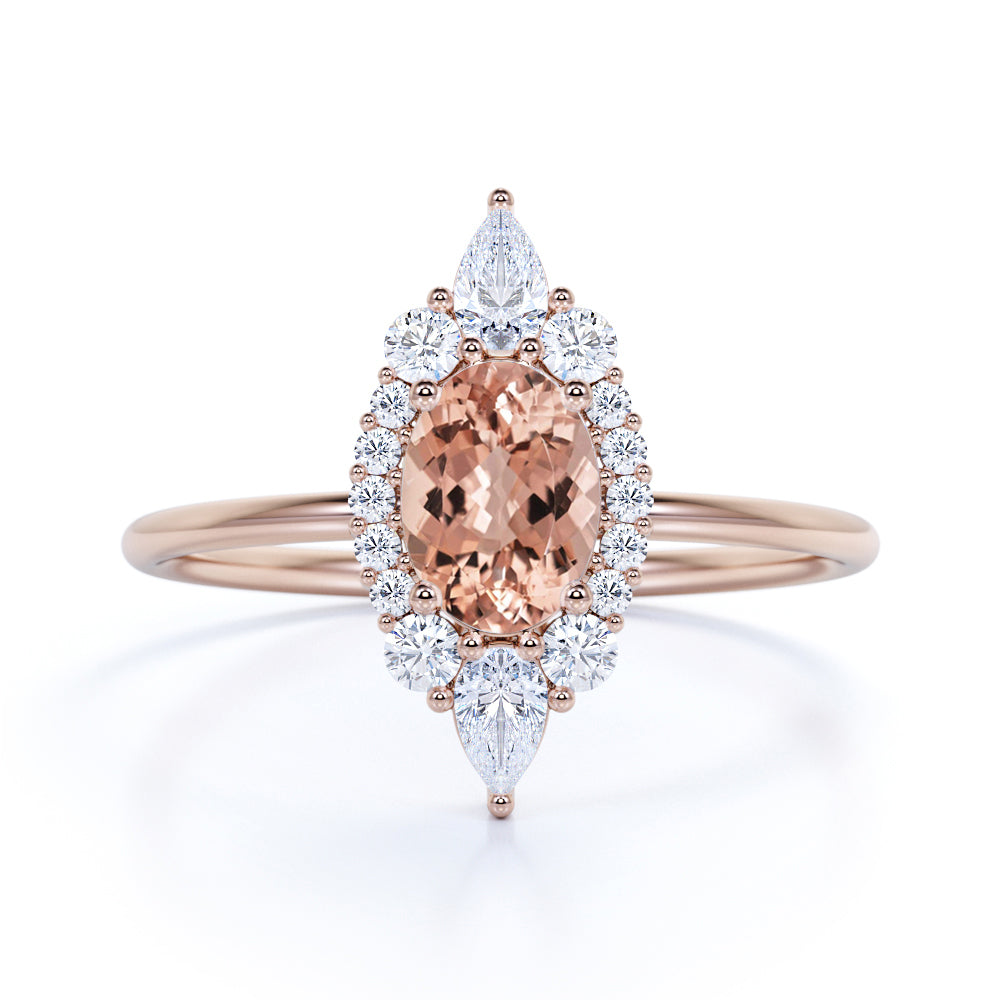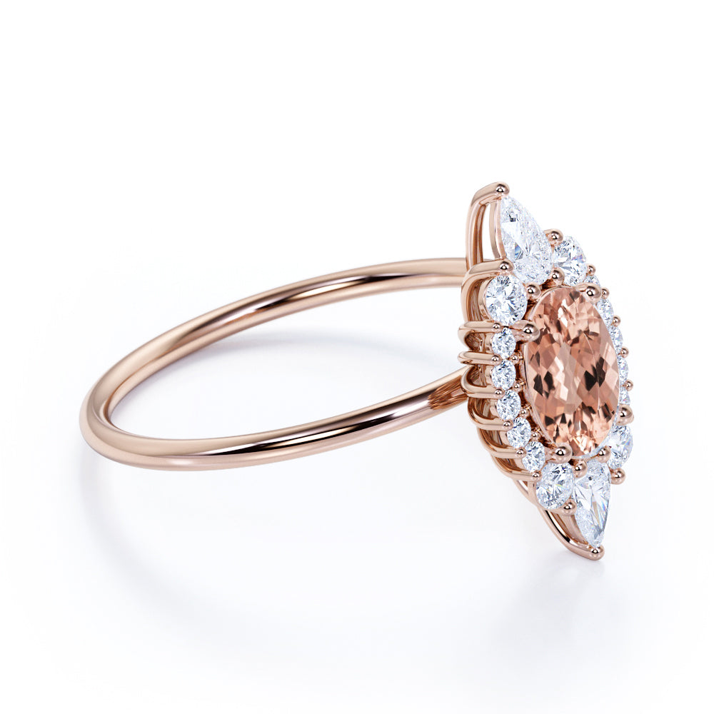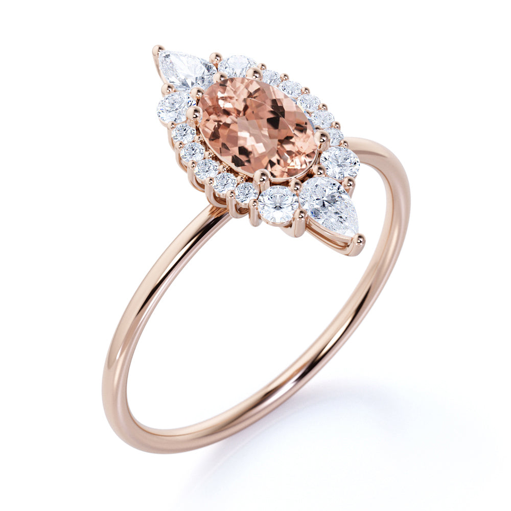 Petite 0.80 Carat Oval Shape Brazilian Morganite and Diamond Cluster Engagement Ring in Rose Gold