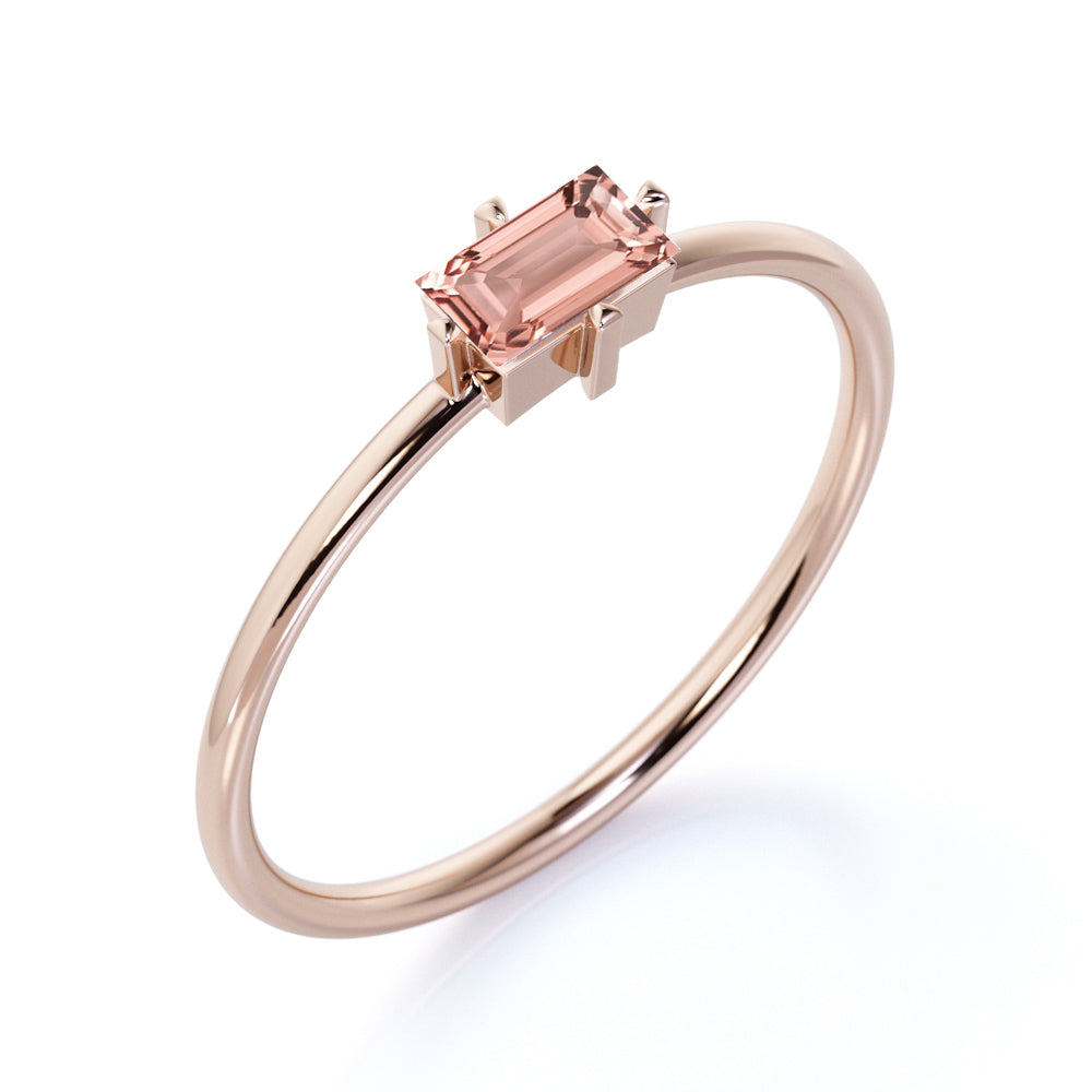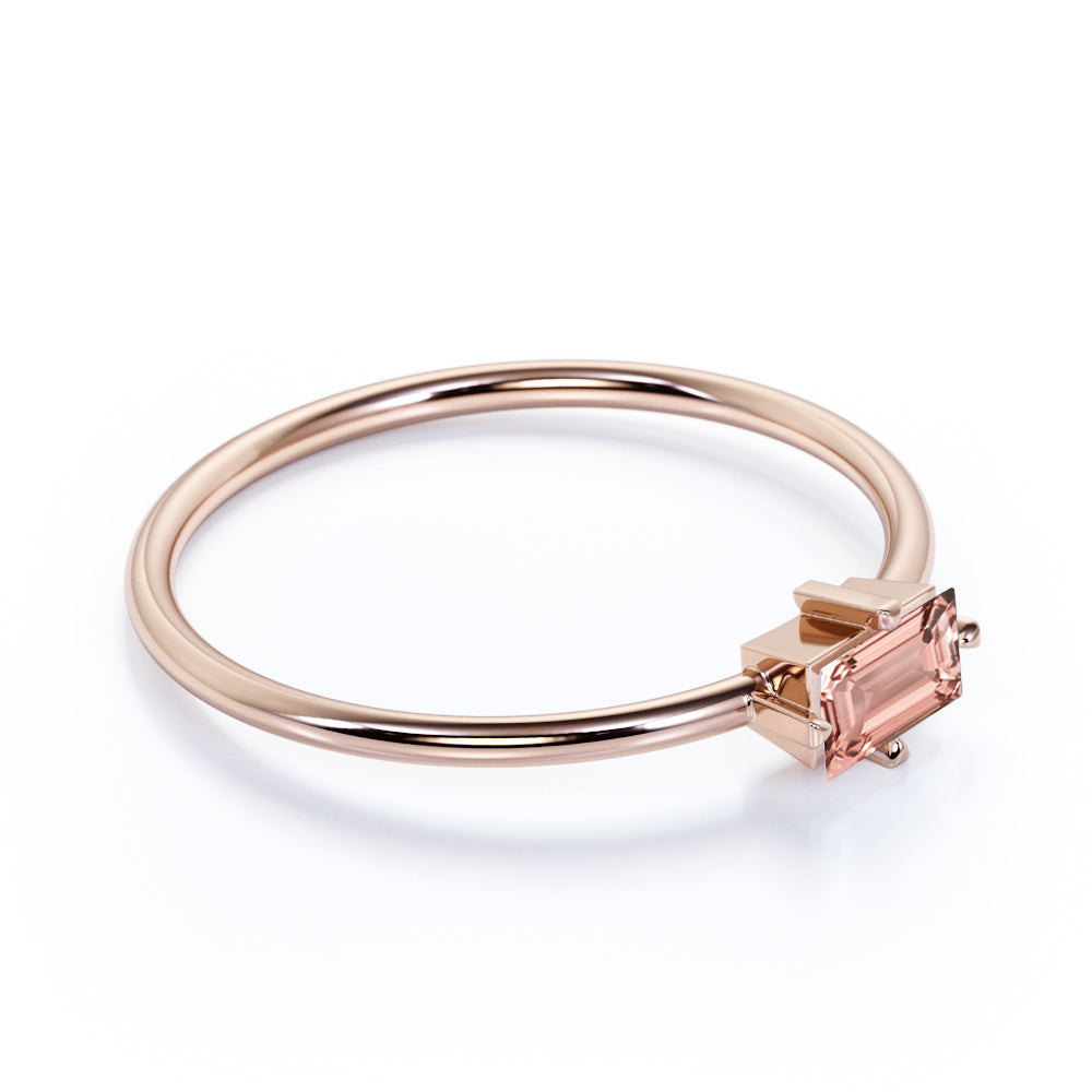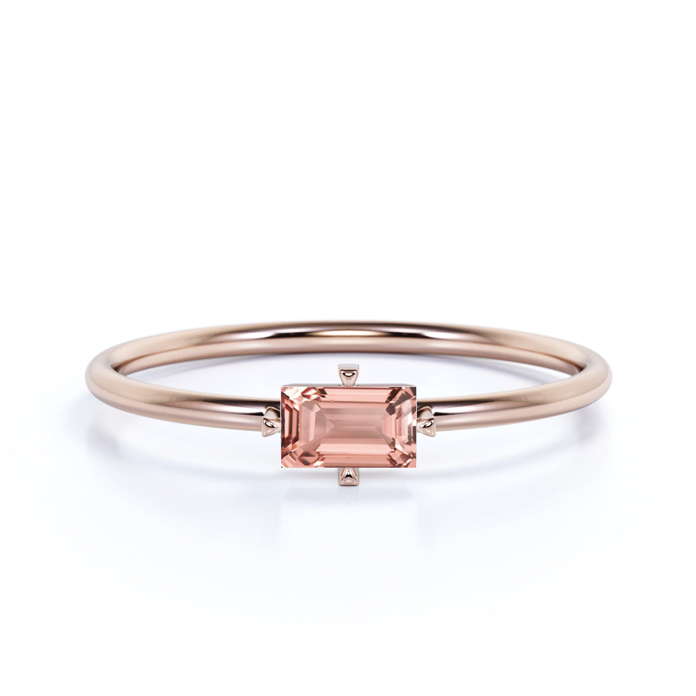 Petite East West 0.50 Carat Emerald Cut Pale Pink Morganite and 4 Prong Solitaire Engagement Ring in Rose Gold