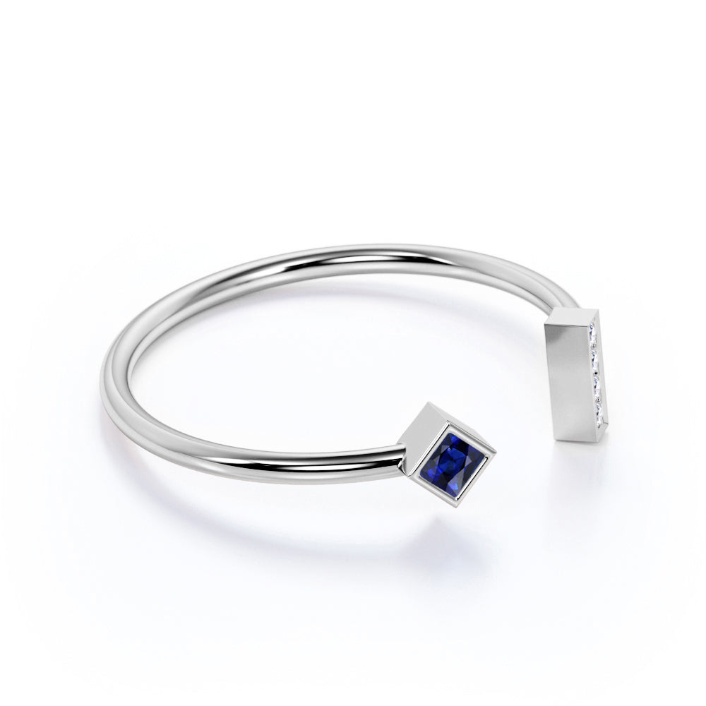 Petite Princess Cut Pastel Blue Sapphire and Diamond Adjustable Stackable Ring Band in White Gold