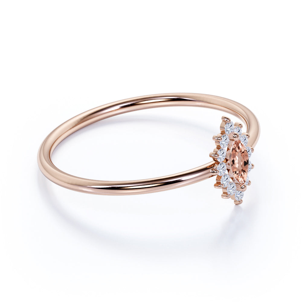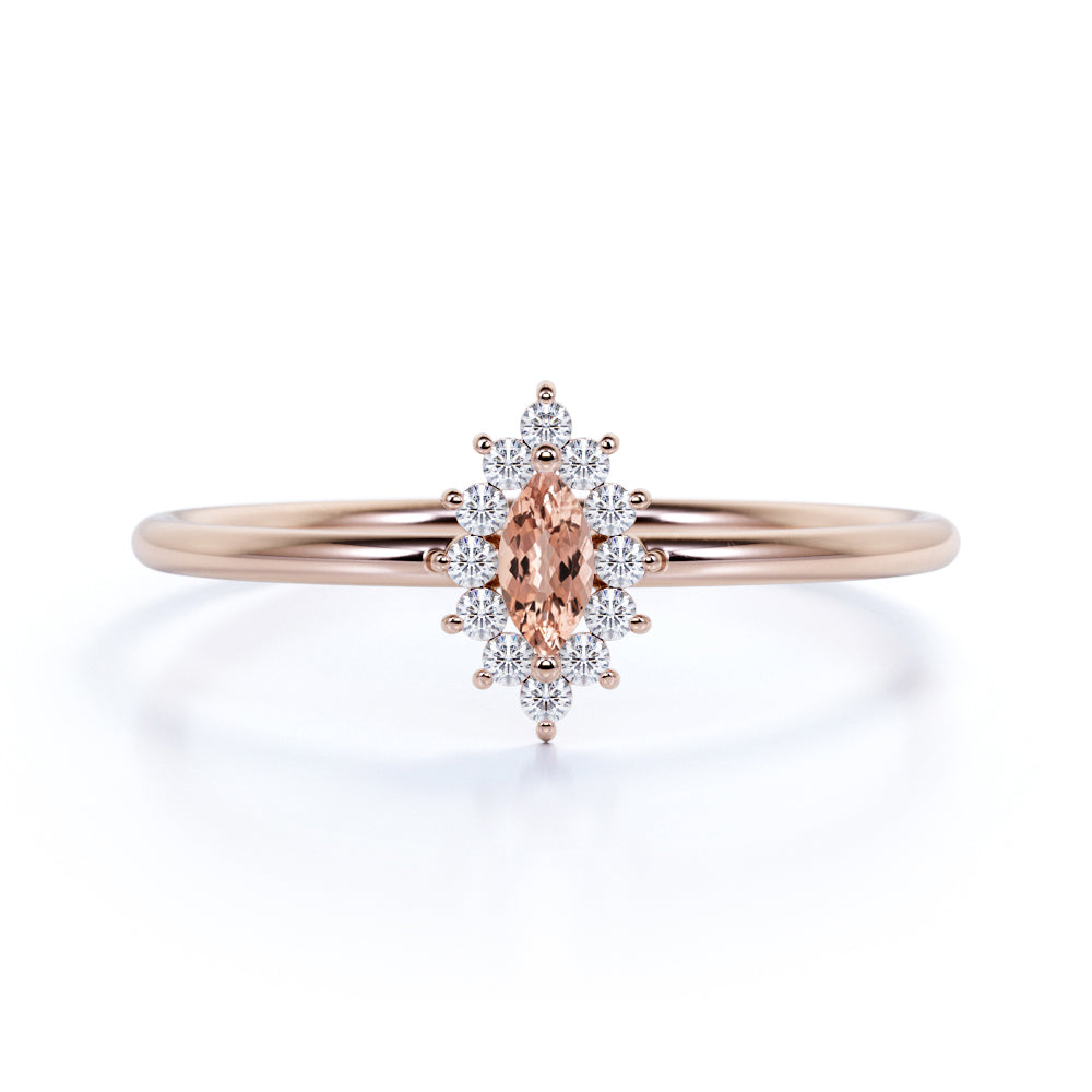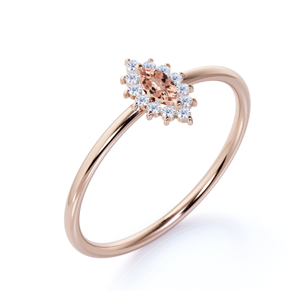 Petite Snowflake 0.50 Carat Marquise Cut Brazilian Morganite and Diamond Halo Engagement Ring in Rose Gold