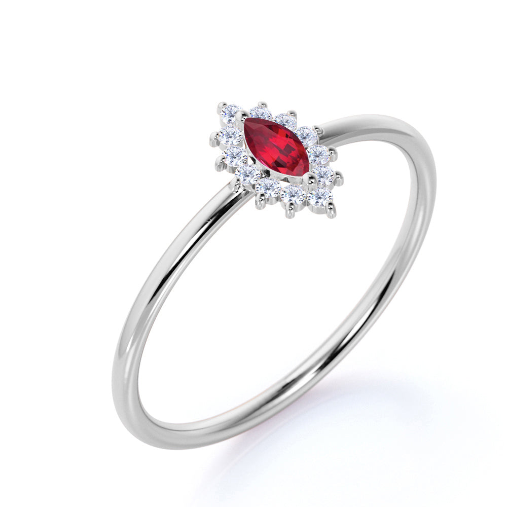 Petite Snowflake 0.50 Carat Marquise Cut Lab Ruby and Diamond Halo Engagement Ring in White Gold