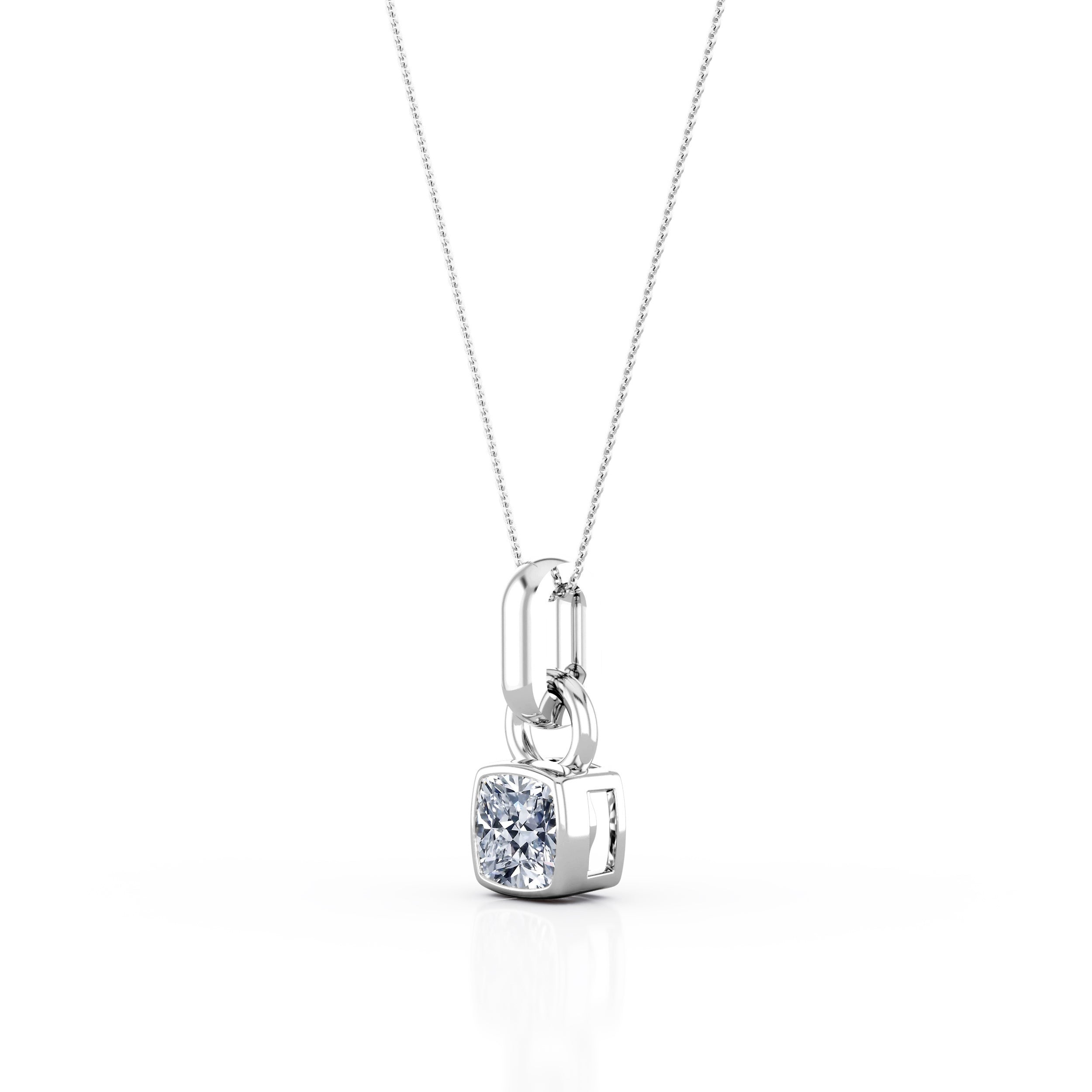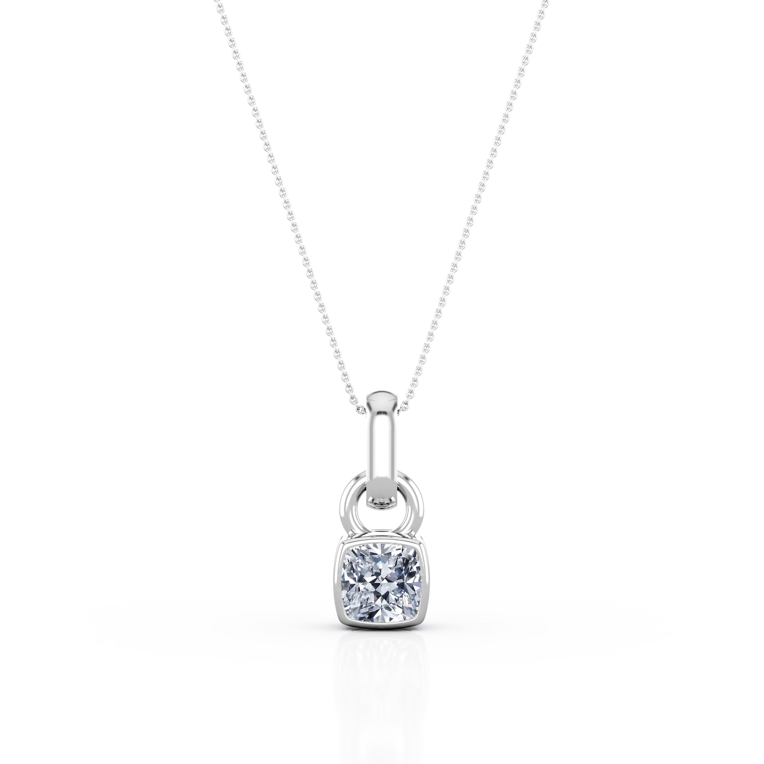 Petite Solitaire 0.50 Carat Cushion Cut Certified Moissanite Bezel Set Pendant Necklace in White Gold