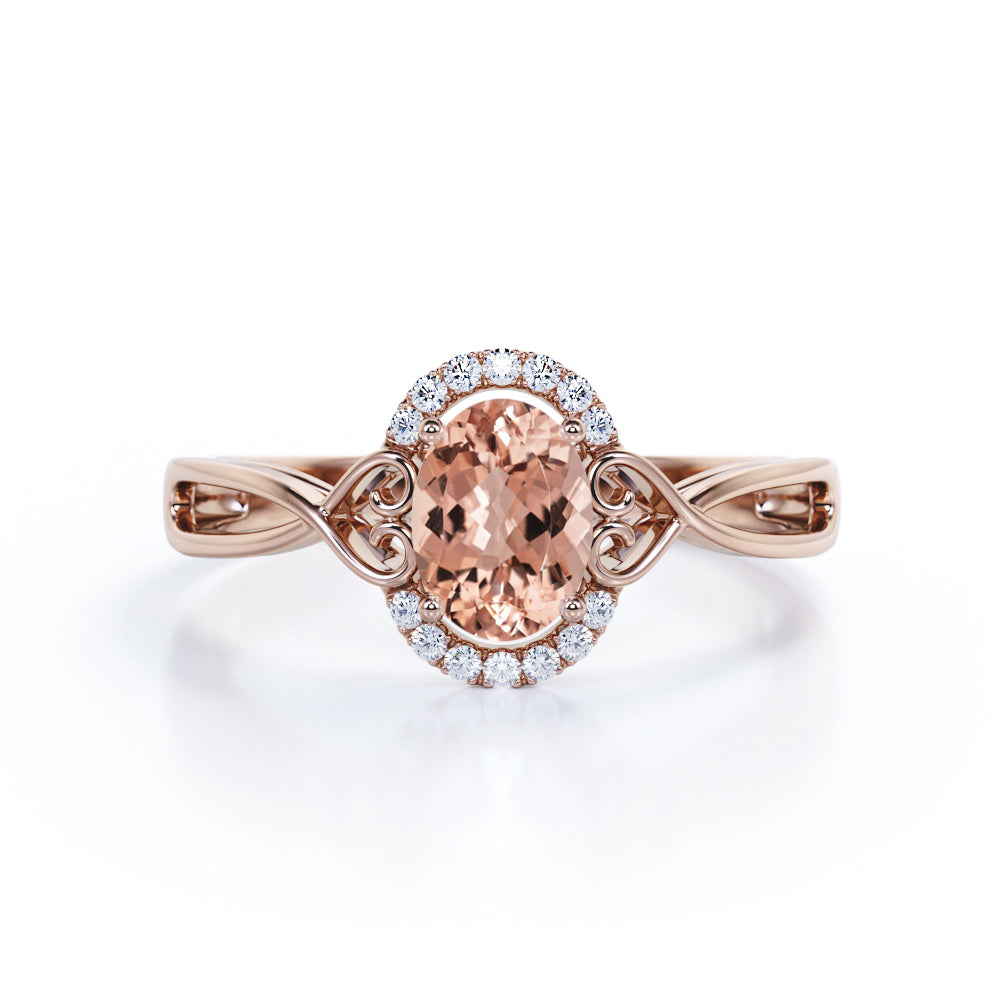 Plain Band 1.50 Carat Oval Cut Morganite and Diamond Halo Engagement Ring in Rose Gold