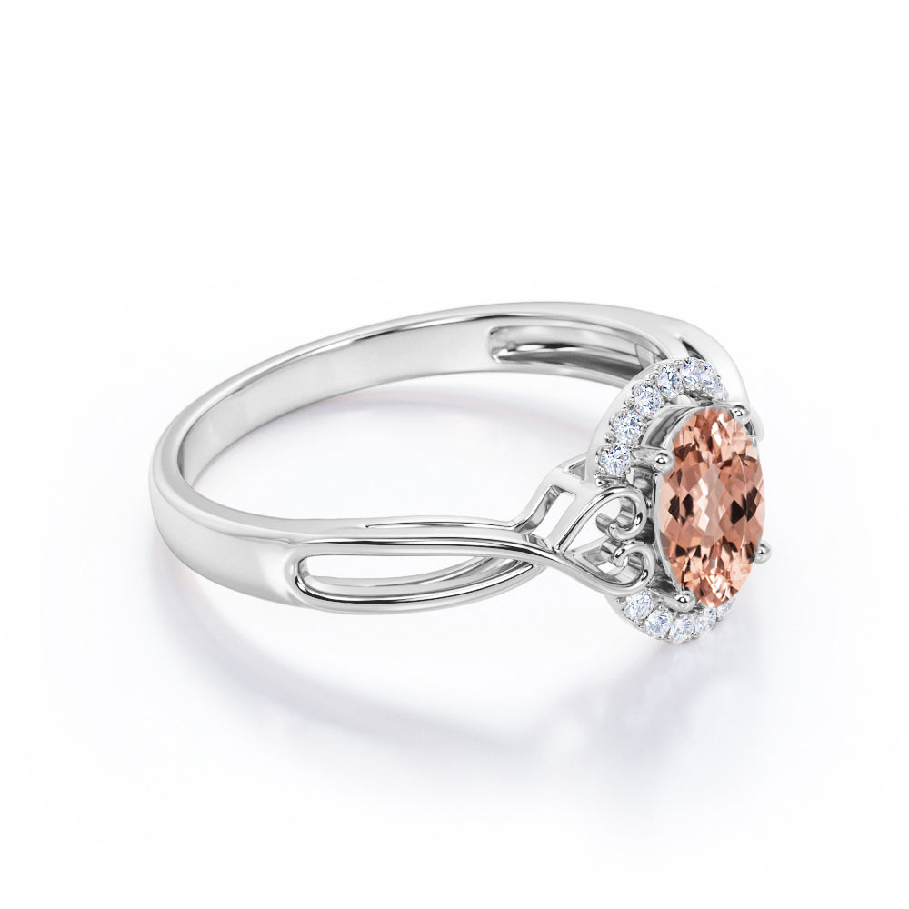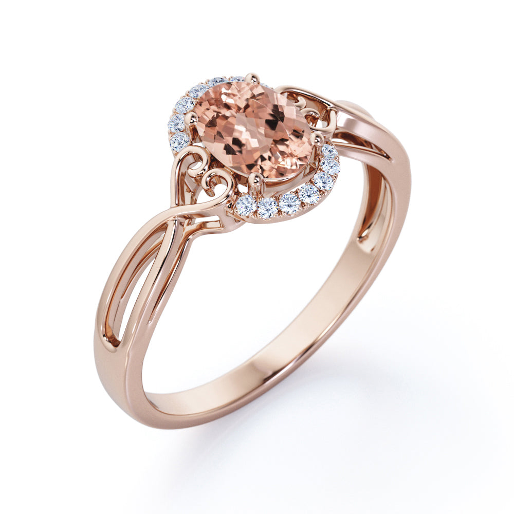 Plain Band 1.50 Carat Oval Cut Morganite and Diamond Halo Engagement Ring in Rose Gold