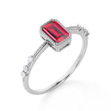 Plain Shank 1.25 Carat Emerald Cut Ruby and Diamond Milgrain Engagement Ring in White Gold
