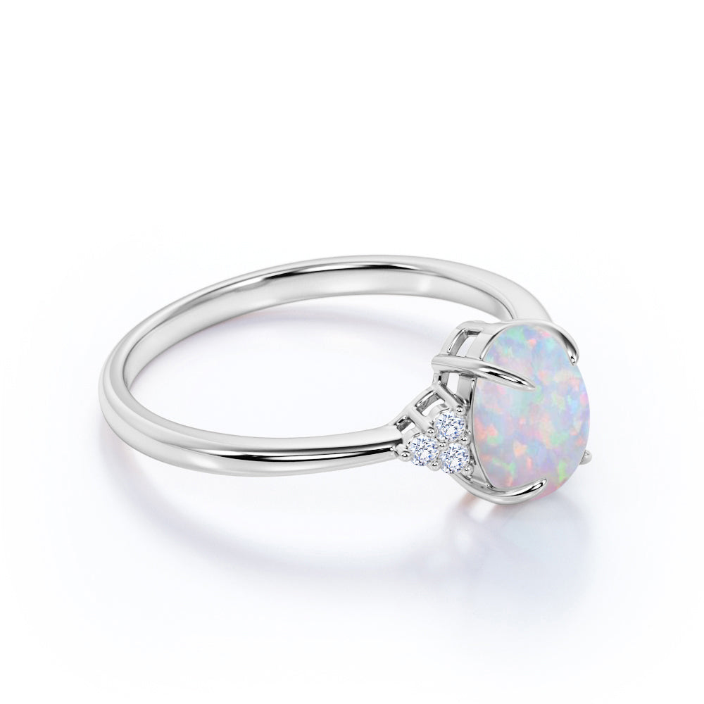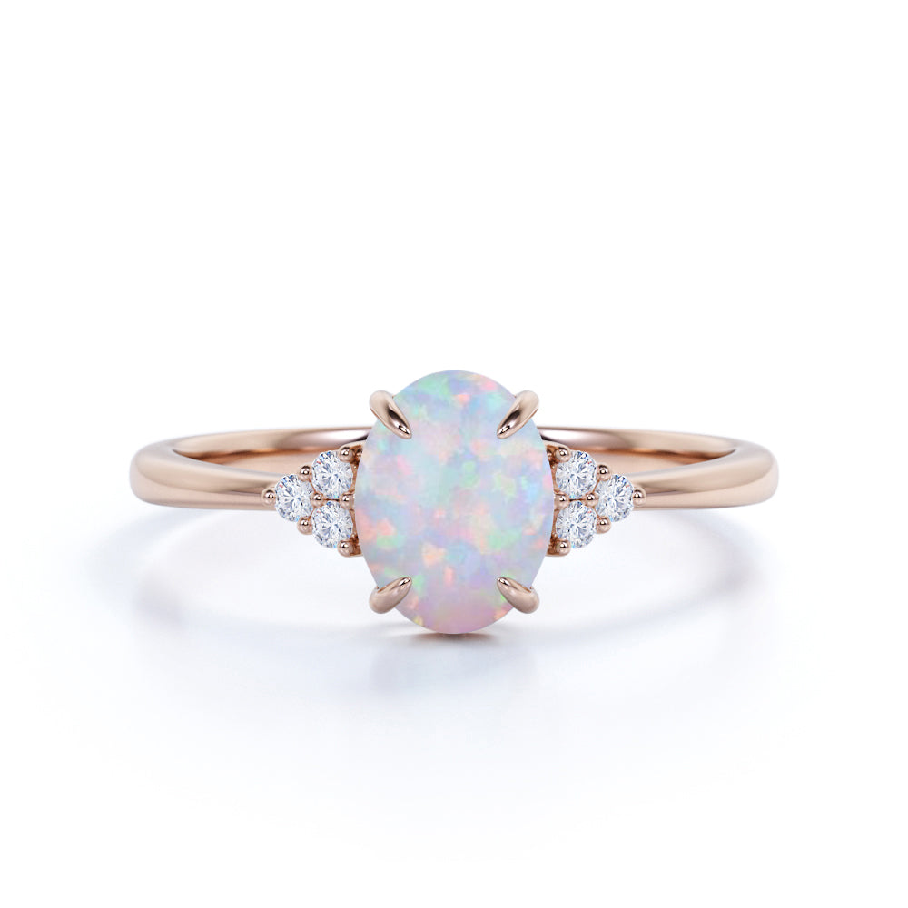 Cluster 1.10 Ct Oval Cut Lab Created Opal Engagement Ring