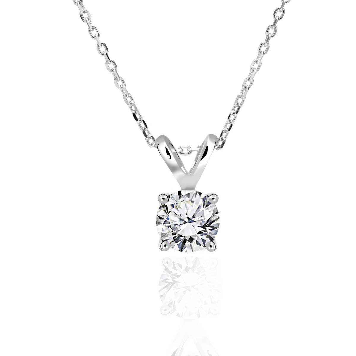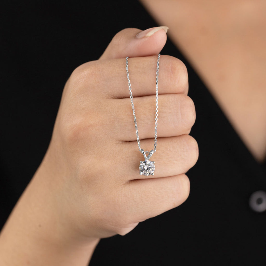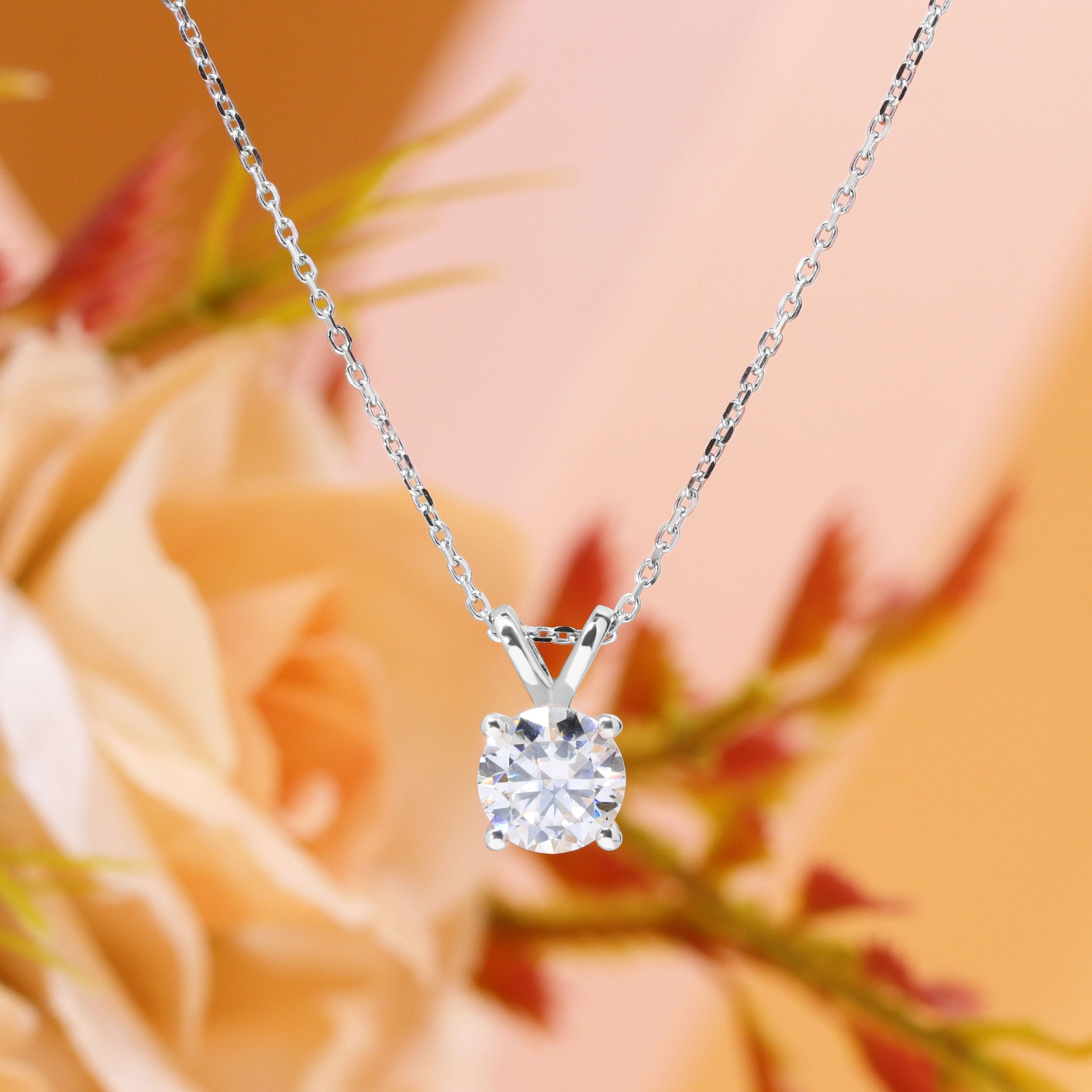 Rope Chain Double Bail 1 Carat Round Cut Certified Moissanite Pendant Necklace in White Gold