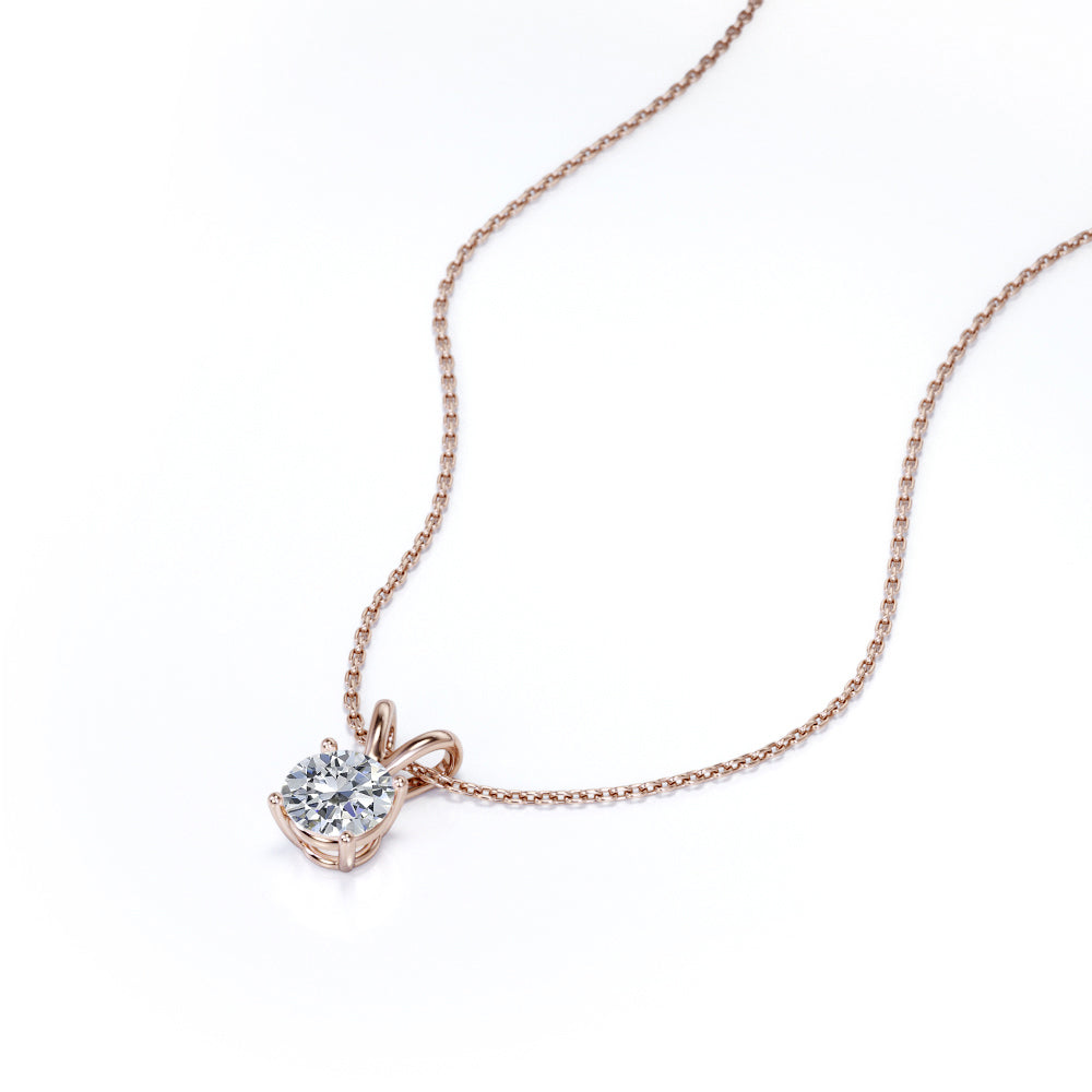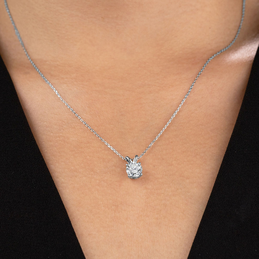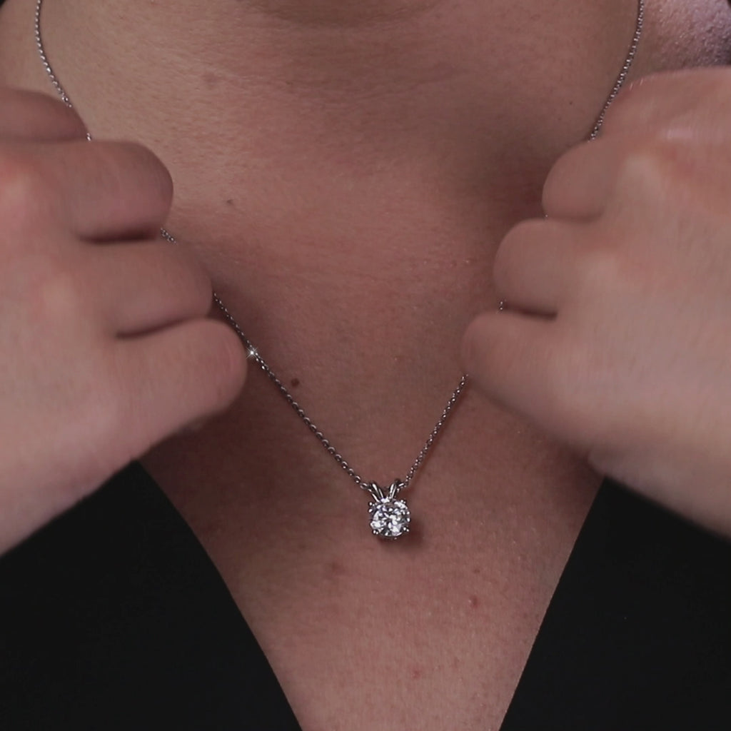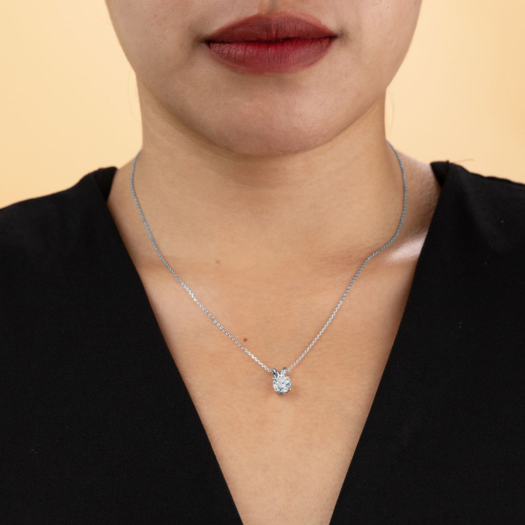 Rope Chain Double Bail 1 Carat Round Cut Certified Moissanite Pendant Necklace in White Gold