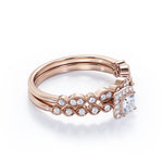 Rope Design Milgrain 0.8 carat Princess Moissanite and Diamond Bridal Set in White Gold
